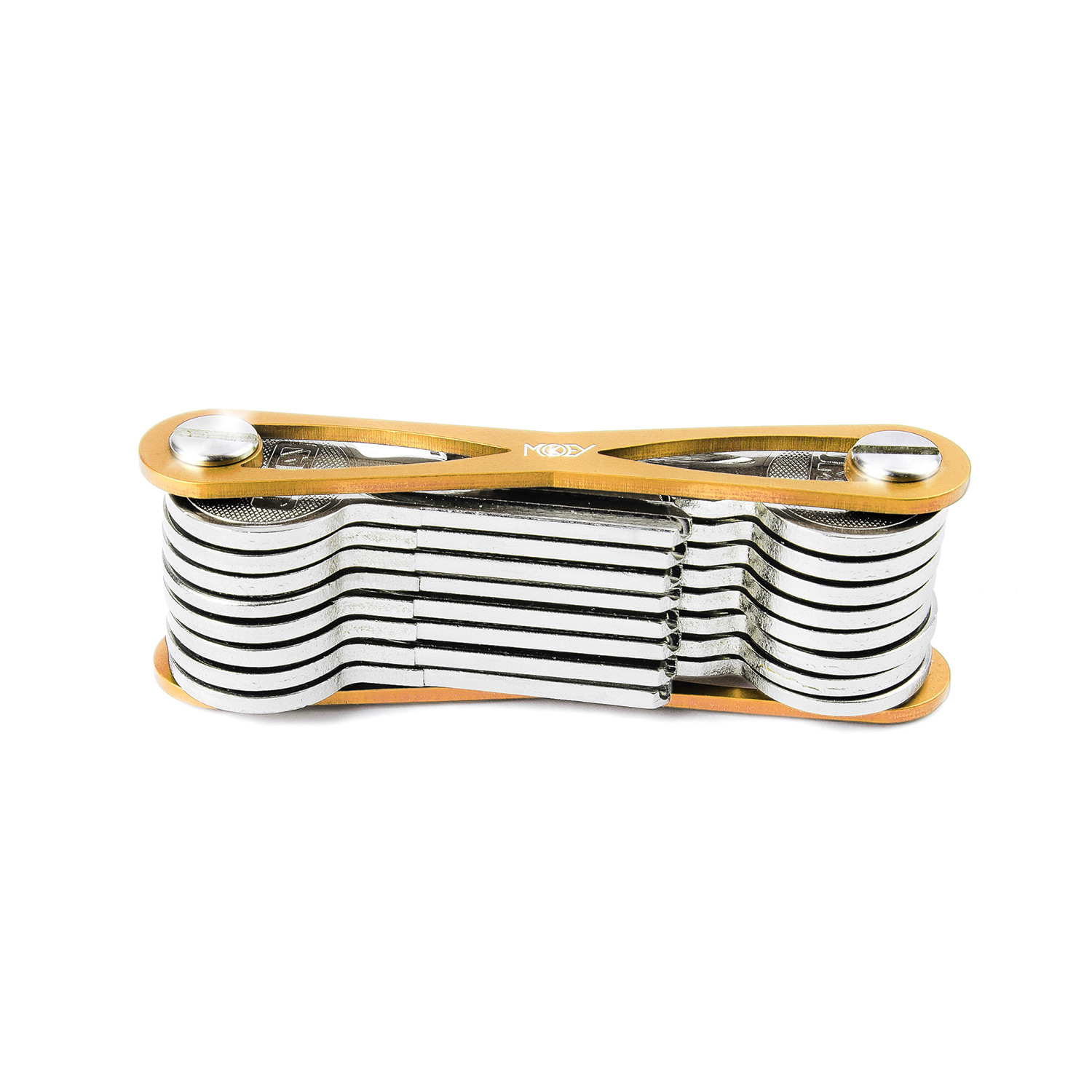 MOKEY just might be the most compact keyring in the world. Crafted in Germany from sleek and durable aluminum, it holds as many as 16 keys in perfect, sturdy organization. No more fumbling or jangling, simply fold out the key you need - just like a Swiss army knife - and then fold it away and slip it in your pocket.