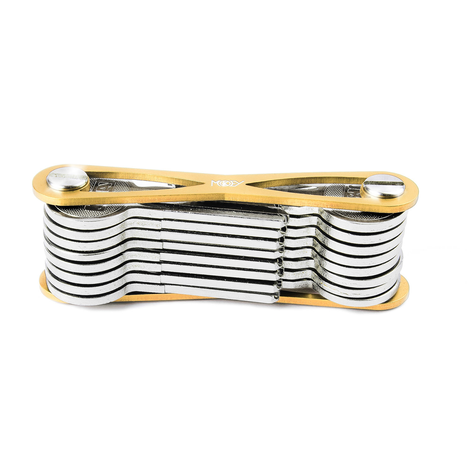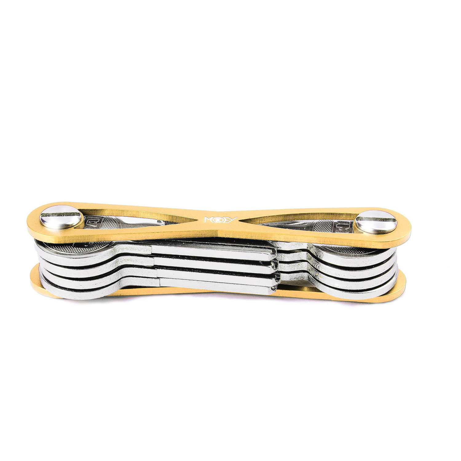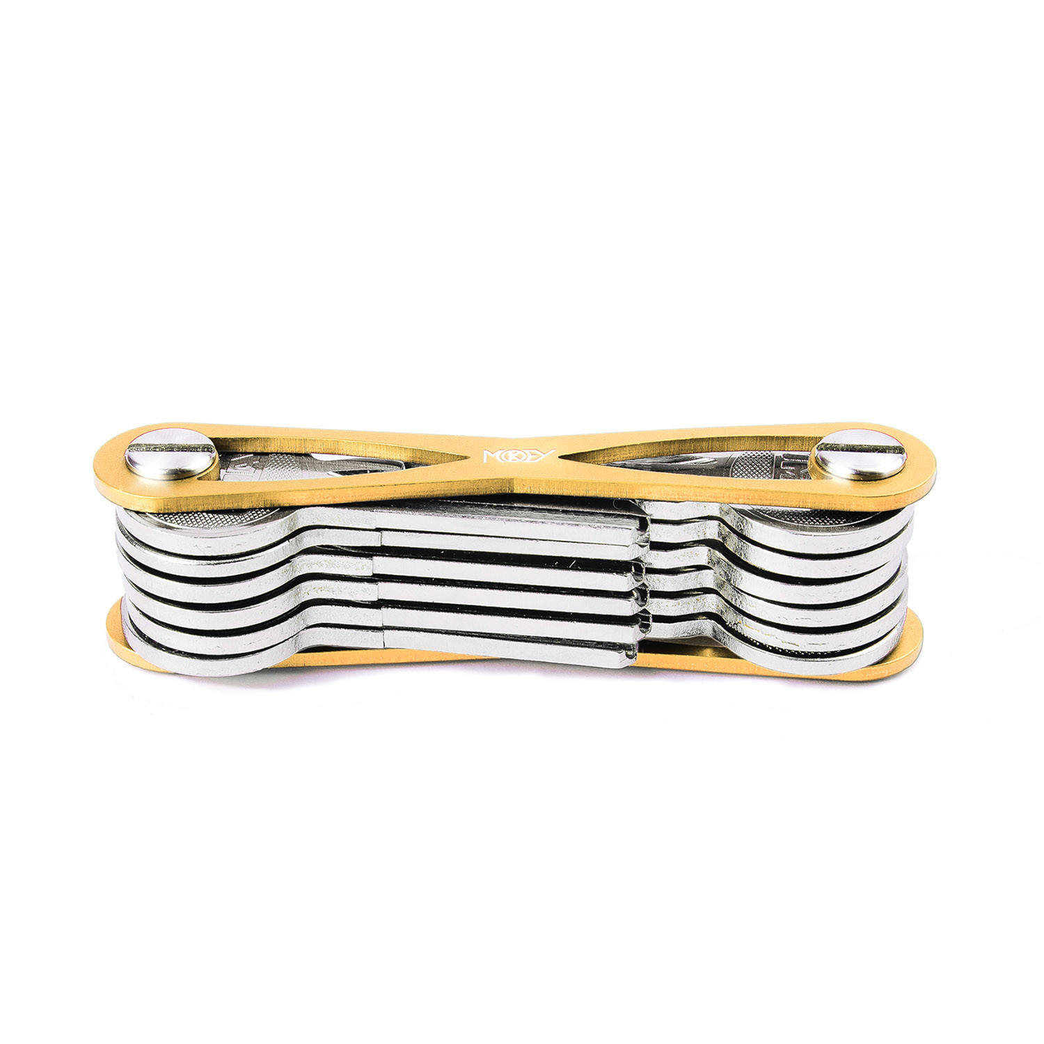 MOKEY just might be the most compact keyring in the world. Crafted in Germany from sleek and durable aluminum, it holds as many as 16 keys in perfect, sturdy organization. No more fumbling or jangling, simply fold out the key you need - just like a Swiss army knife - and then fold it away and slip it in your pocket.