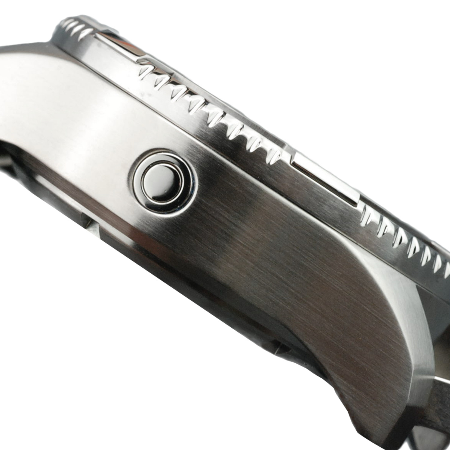 Deep Diver 04 is rugged and ready for action. This nautically inspired timepiece has a comfortable silicone strap, a strong stainless steel case, impeccable Japanese movement, and water resistance to an impressive 1000 meters. Whether you're sailing the high seas or diving for treasure, this watch will see you through any storm.
