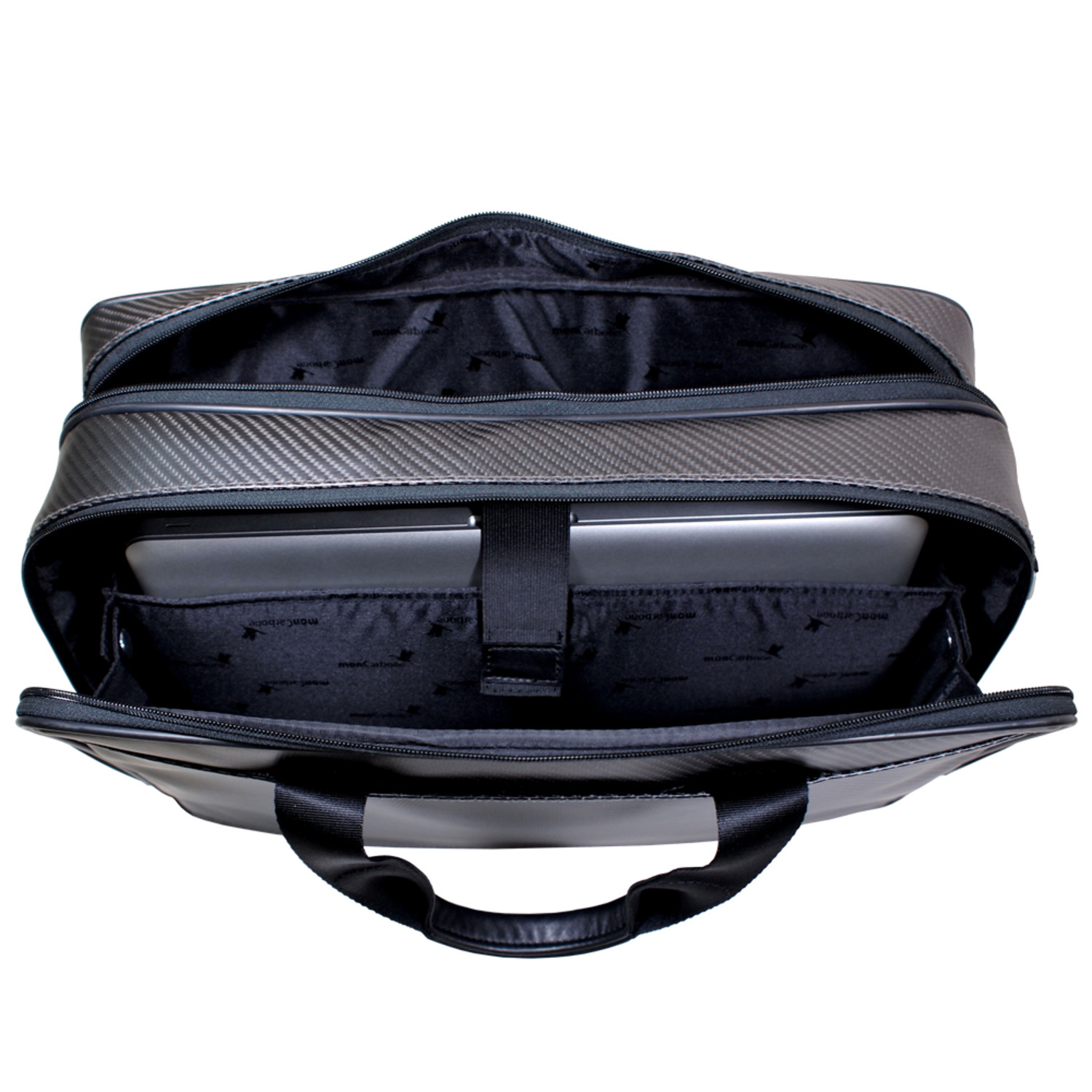 The expandable briefcase is an innovative addition to the Carbon SOFT family. The next generation of aerospace carbon fiber with first-class workmanship gives this exclusive line of leather goods an elegant minimalism to compliment the fashion-forward professional. This case features a padded compartment for laptop storage and protection, as well as a bonus compartment for safe iPad transport.