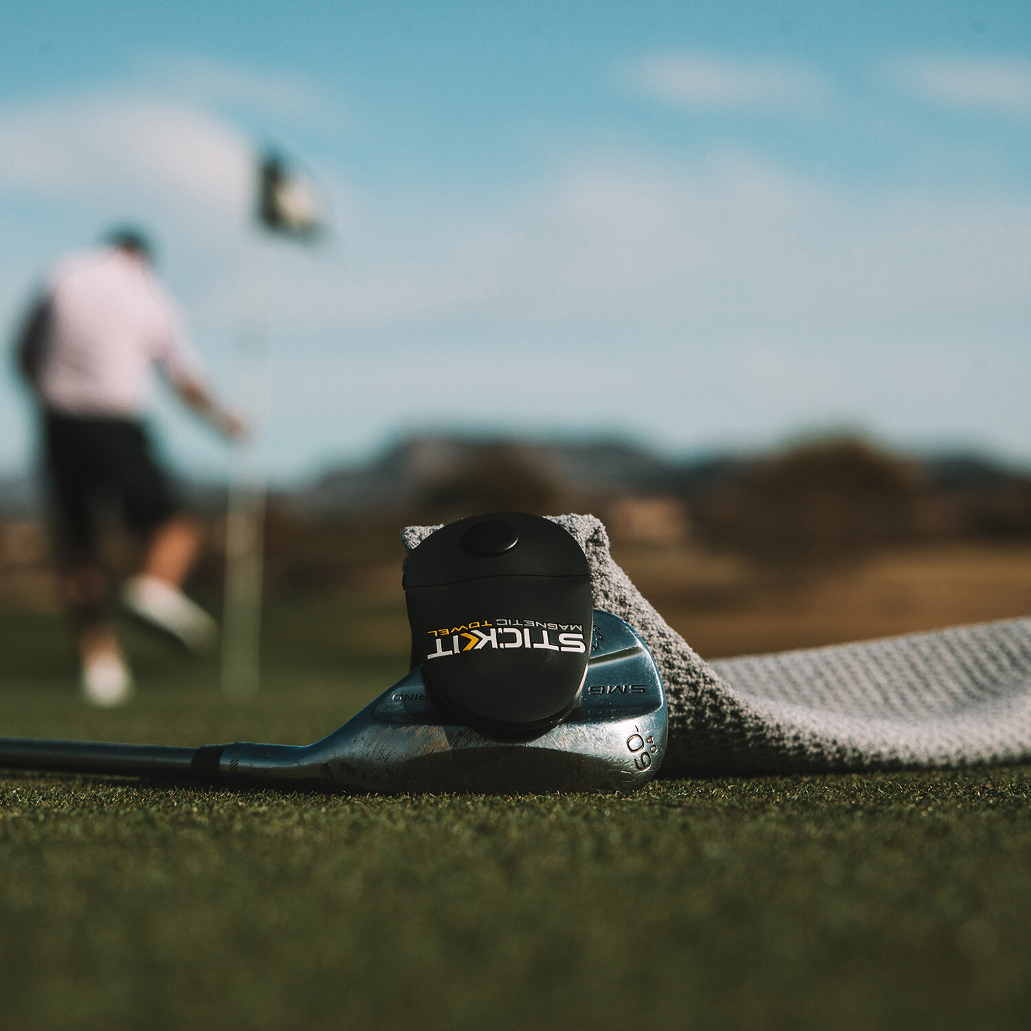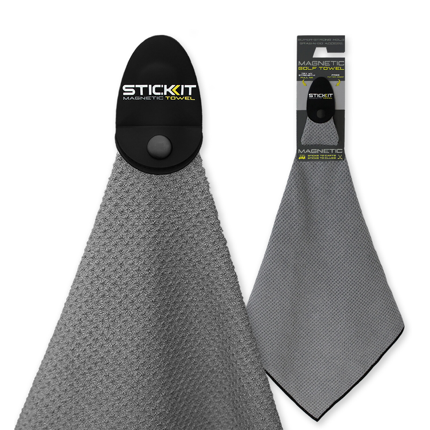 Get ultimate convenience from tee to green with the STICKIT Magnetic Golf Towel. With its removable, industrial-strength magnetic patch, you can stick it on golf carts, clubs, and bags to ensure that you get a fast grab off the cart and a quick pickup from the turf.