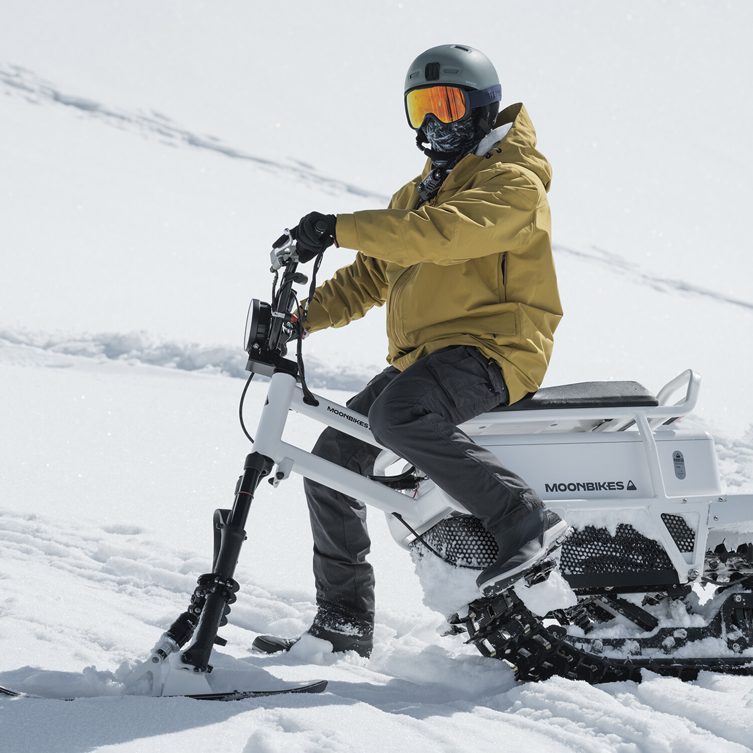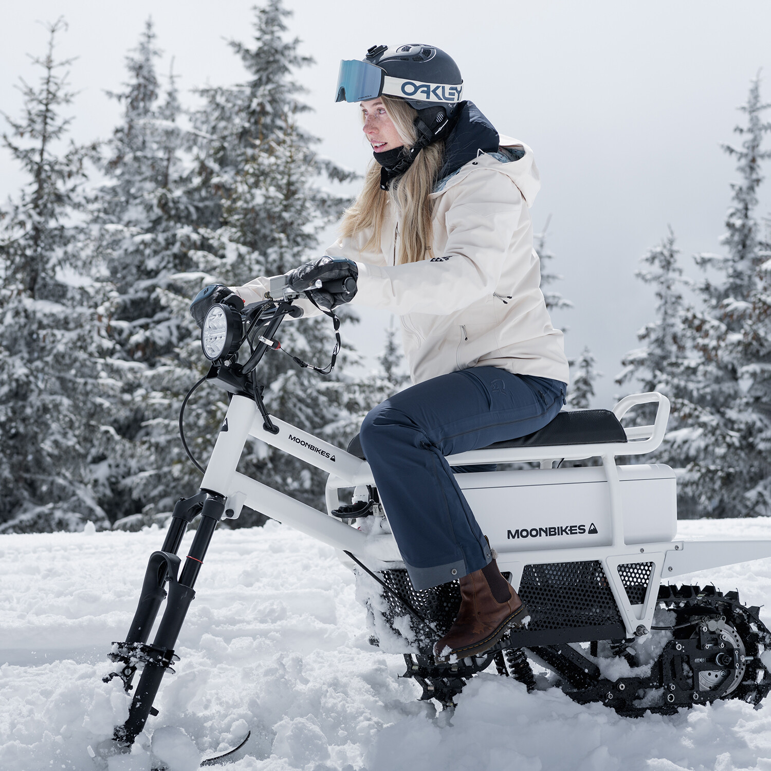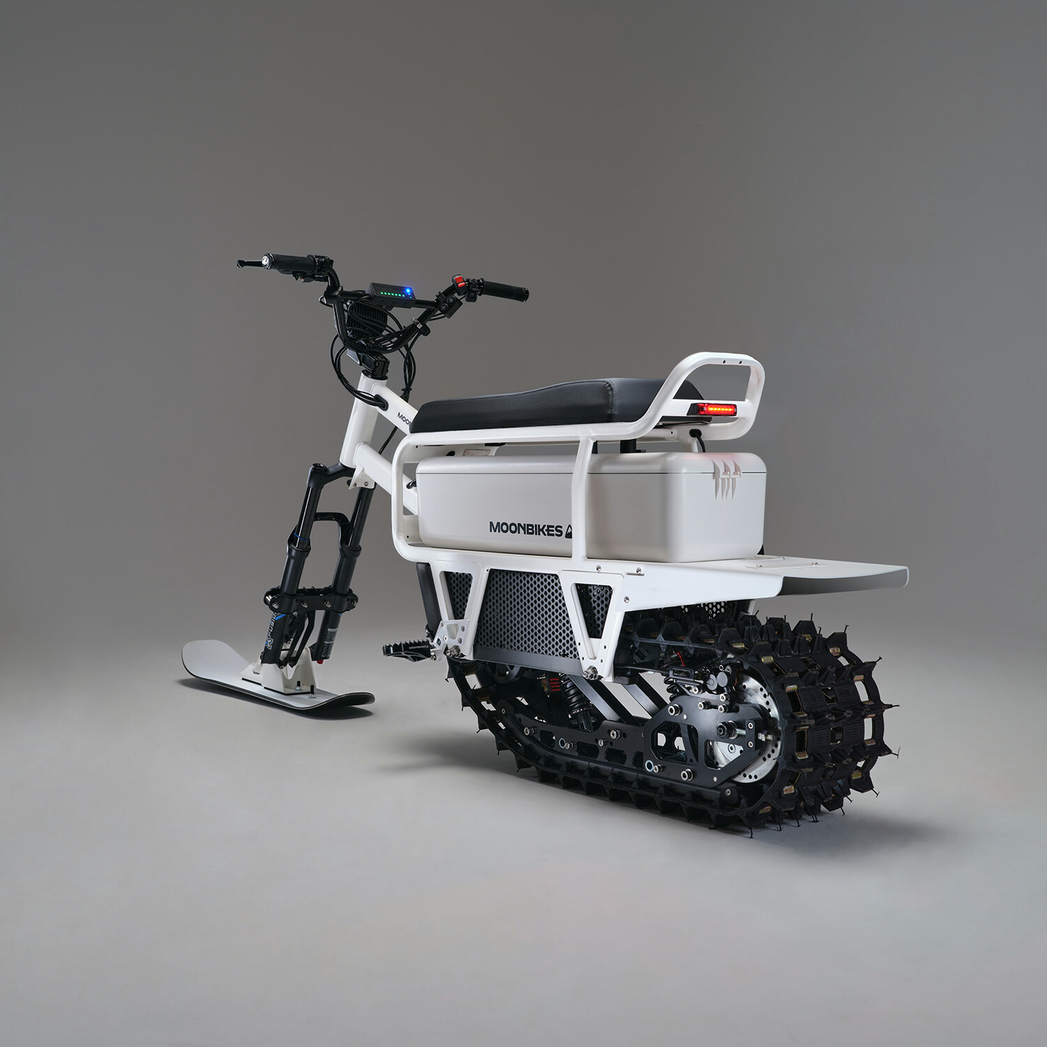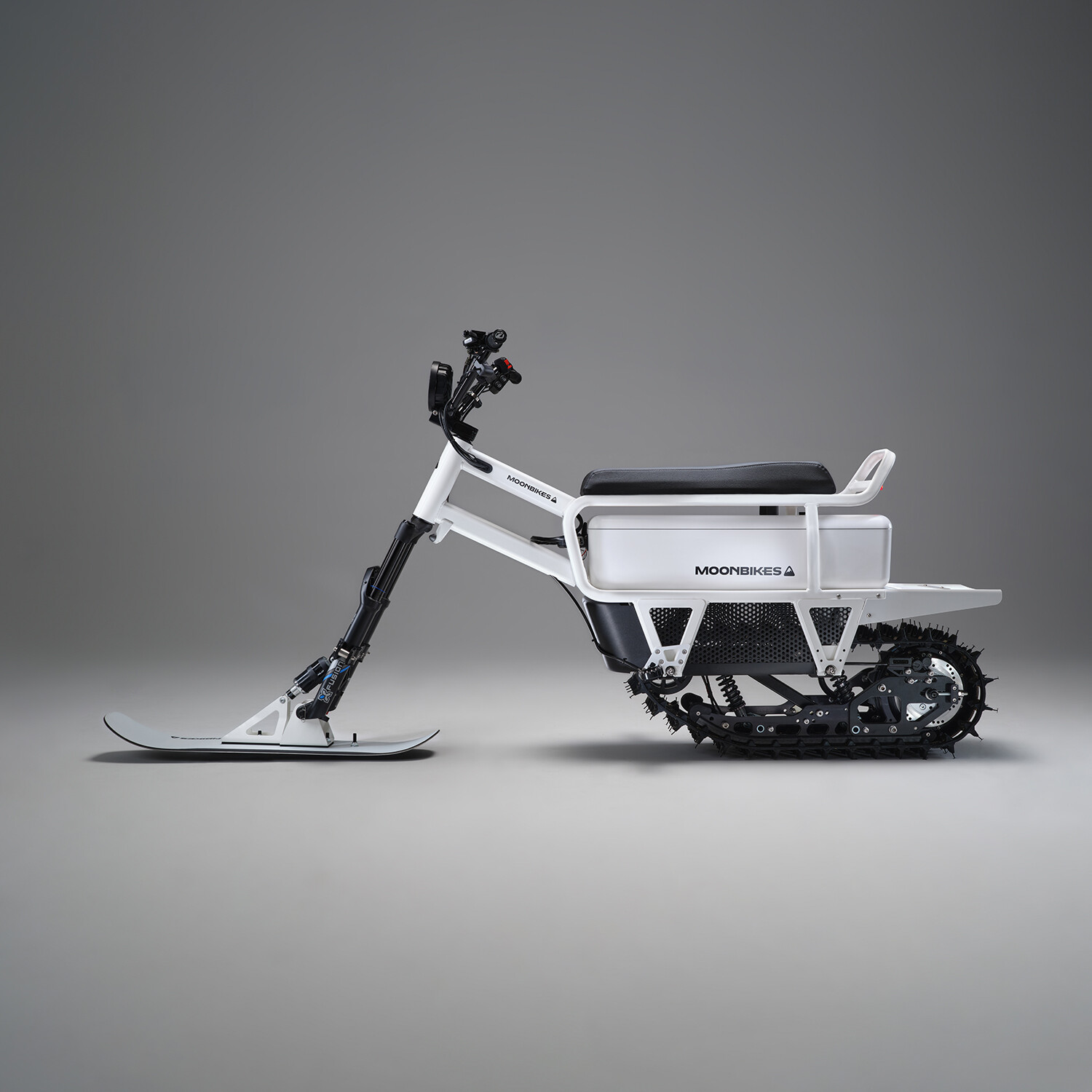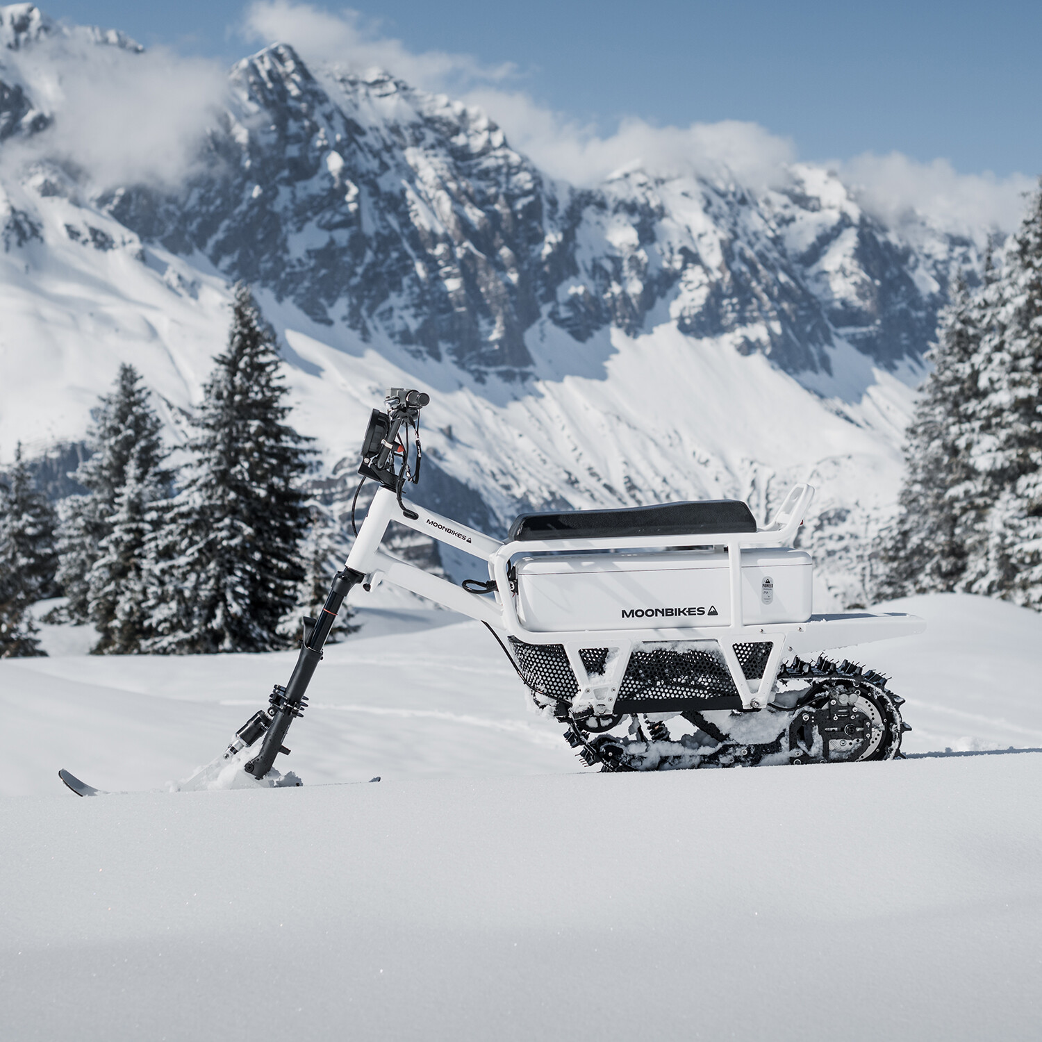 MoonBike is the world’s first electric snowbike — a true revolution in winter mobility and recreation. Fun, easy to ride, quiet and with zero active emissions, each MoonBike is expertly crafted in the French Alps by Bosch Margnier, and the patented direct-drive propulsion system is powerful and efficient. And the included Fast Charger will get you going farther, faster. Charge your MoonBike fully in 2h 20m, which is about 50% faster than the standard charger.