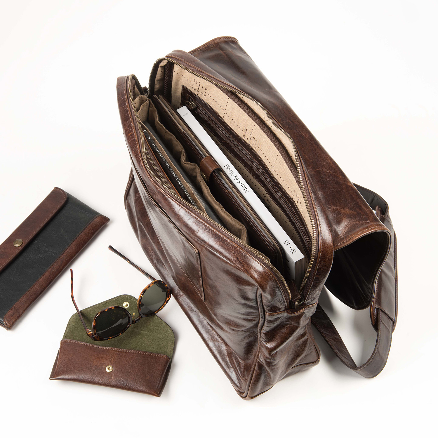The spacious Wynn Mail Bag will keep everything from clothing to your laptop well organized. The Brompton leather construction represents a blending of today’s technology with the dedication and skill of Old World artisans from a one-hundred-fifty-year-old Italian tannery. These natural leathers are produced on the finest hides available, then processed with pure water straight from the Italian Alps. An innovative hot wax tanning technique highlights the natural tones and rich colors of this leather that will only be enhanced over time in both feel and appearance. Updated with a zip closure and a discrete exterior strap to secure your bag to your rolling luggage, the Wynn's vintage pedigree has been refined for the modern man.