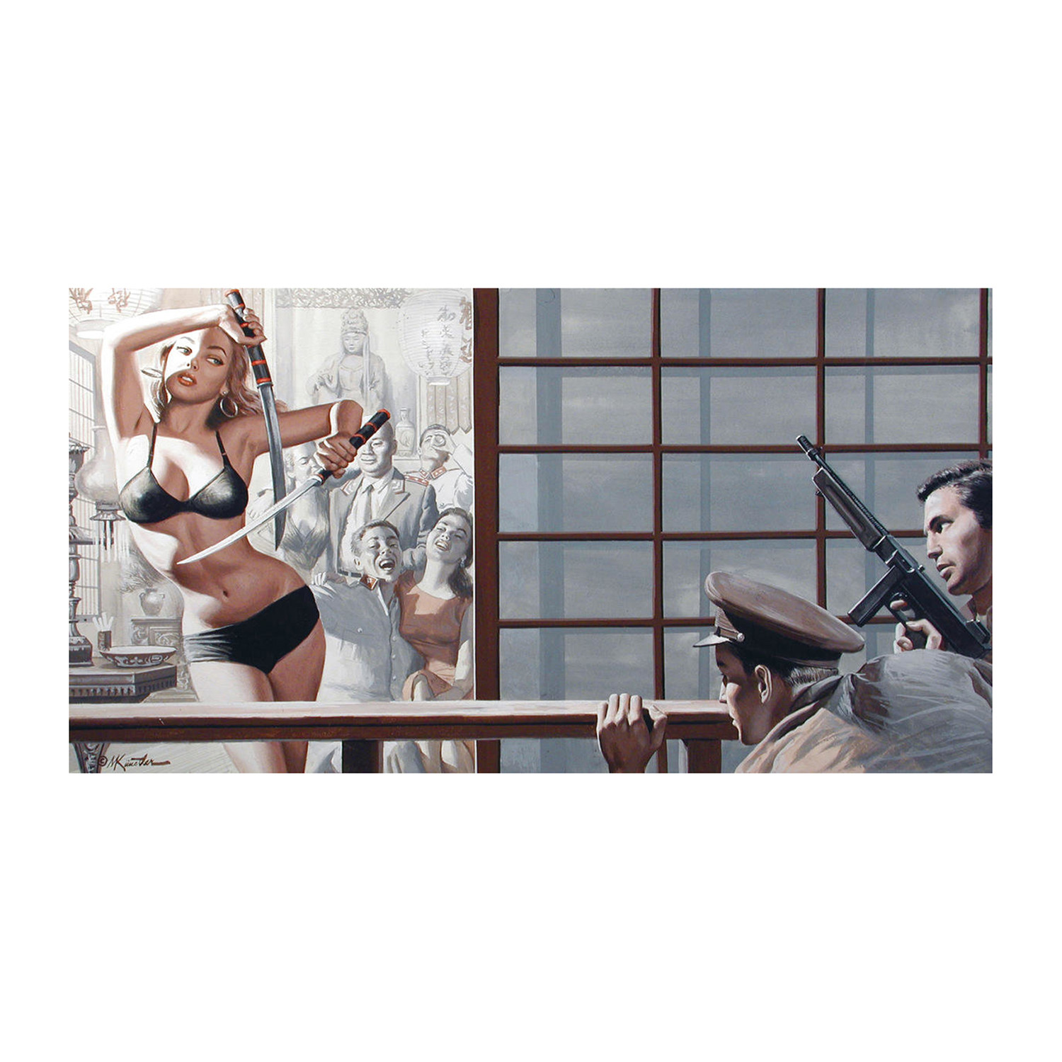 This selection of daring canvas prints highlights some of his most iconic creations from that era, including valiant tales from the warfront, near-death experiences, and risqué depictions of espionage, illicit affairs, and chance encounters. Evoking the vintage style of pulp magazines and retro B-movie posters, every piece in this collection makes for an exciting and attention-grabbing addition to any art collection.