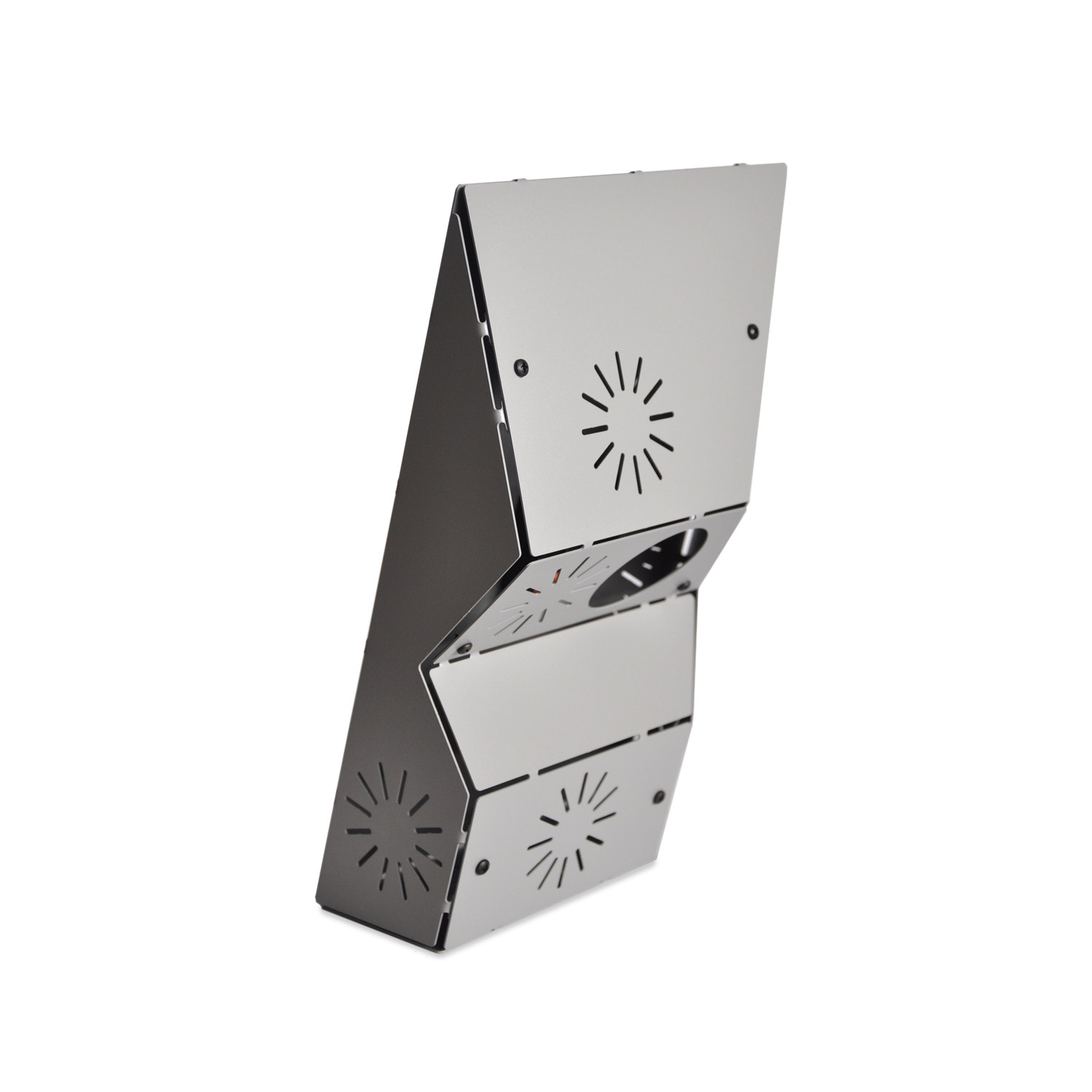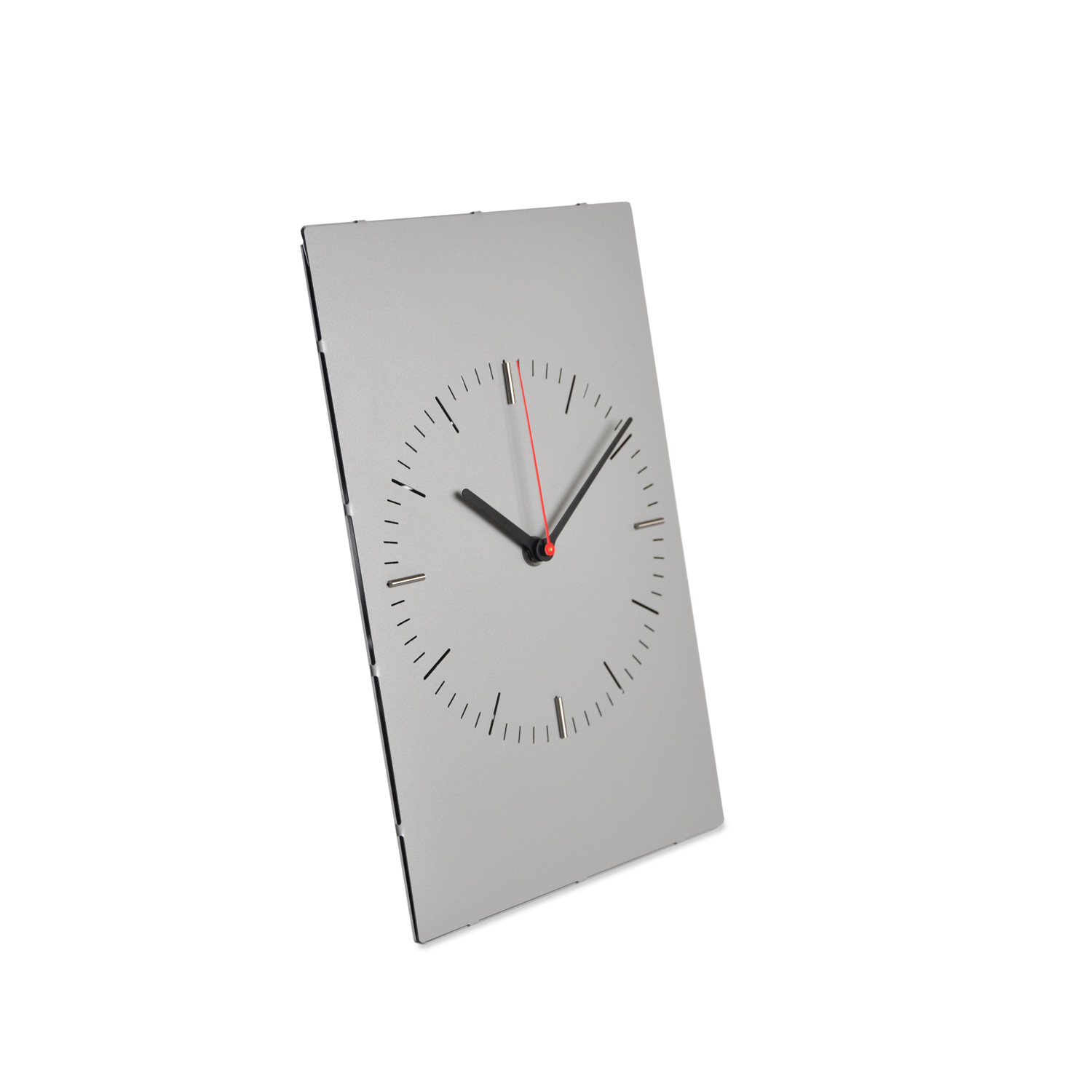 The AboutFaceClock is designed by architect Mark Ejnes to be many clocks in one. A clever new take on a centuries old invention, this clock hangs on a wall, corner or ceiling at virtually any angle and facing any direction. Attach the custom ‘puck’ hanger to any surface and simply hang the clock in whichever direction you choose by using any of the slotted holes on the back. The innovative AboutFaceClock is sculptural and playful and offers a practical way to tell time from many different angles within a room.