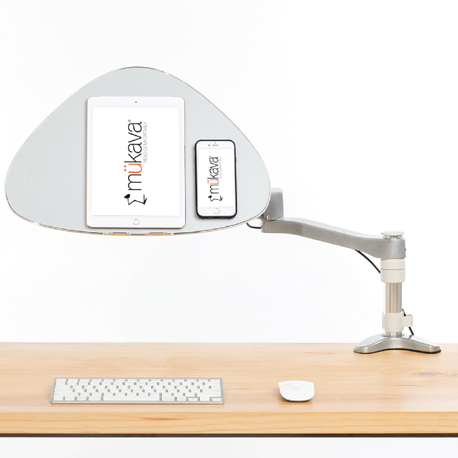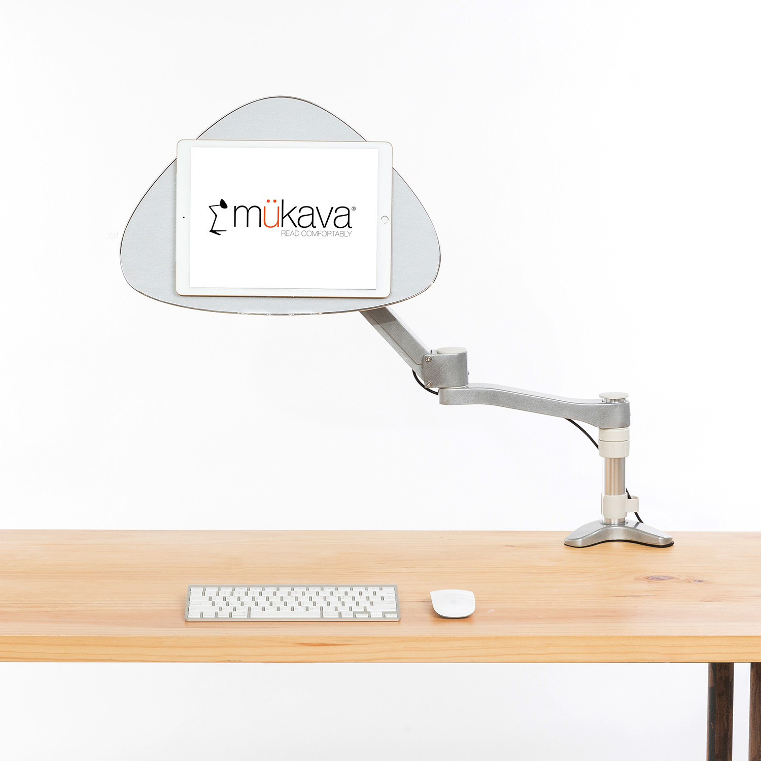 The Mükava mount can be installed on any wall or table surface, and lets you position yourself effortlessly and ergonomically, to help you to use your favorite device for longer, with no aches and pains. With the tablet and smartphone pads, you can set your device on the mount at any angle and it won't slide, or use the bands to hold open a real book. It even includes Document Pebbles, to magnetically hold pieces of paper in place while you work in the office or kitchen.