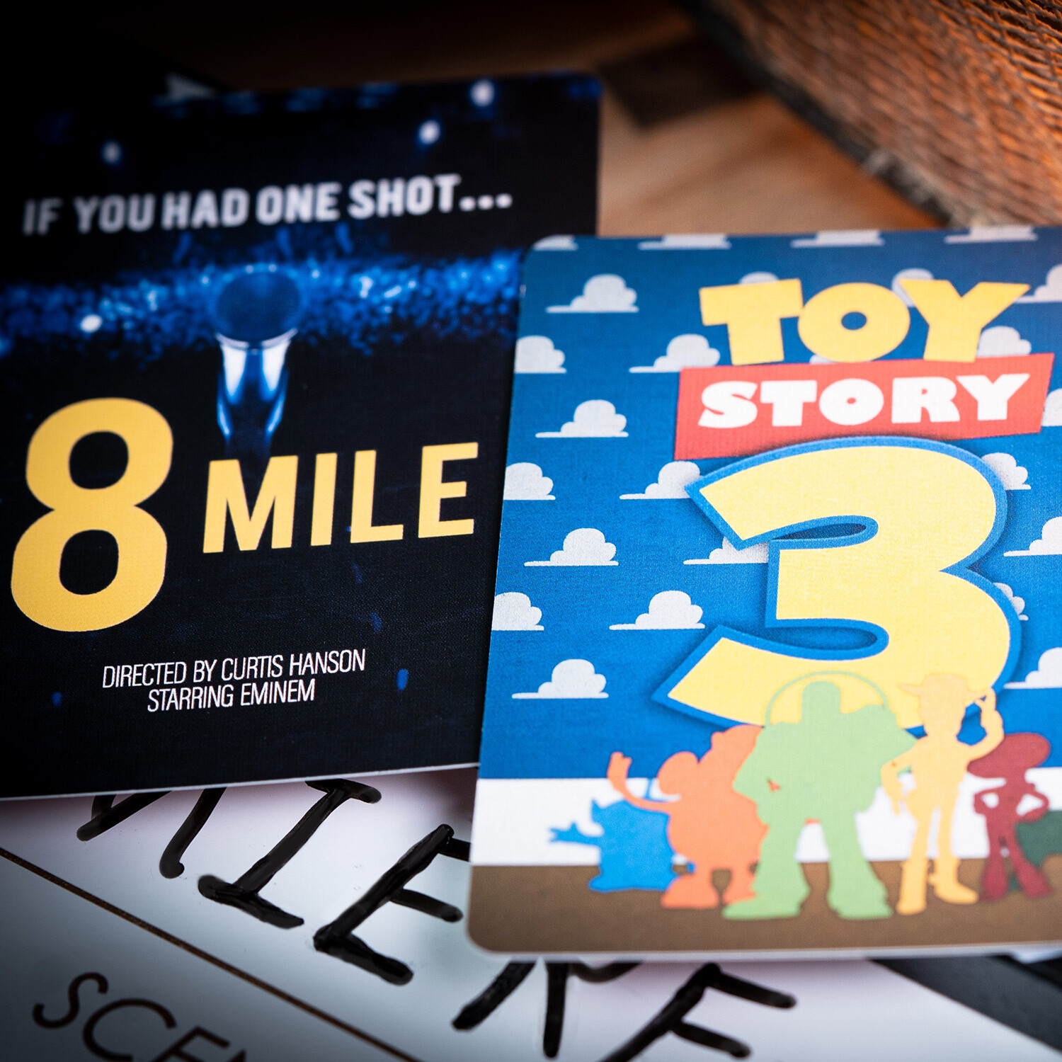 The five envelopes are now laid out in a row and five tokens are introduced. These are placed on top of each envelope in any order they choose. The movie posters are then tipped out of the envelopes and the tokens are slowly turned over one at a time. Amazingly, on the back of every token is a different number that directly correlates to the film it was paired with - a perfect match!