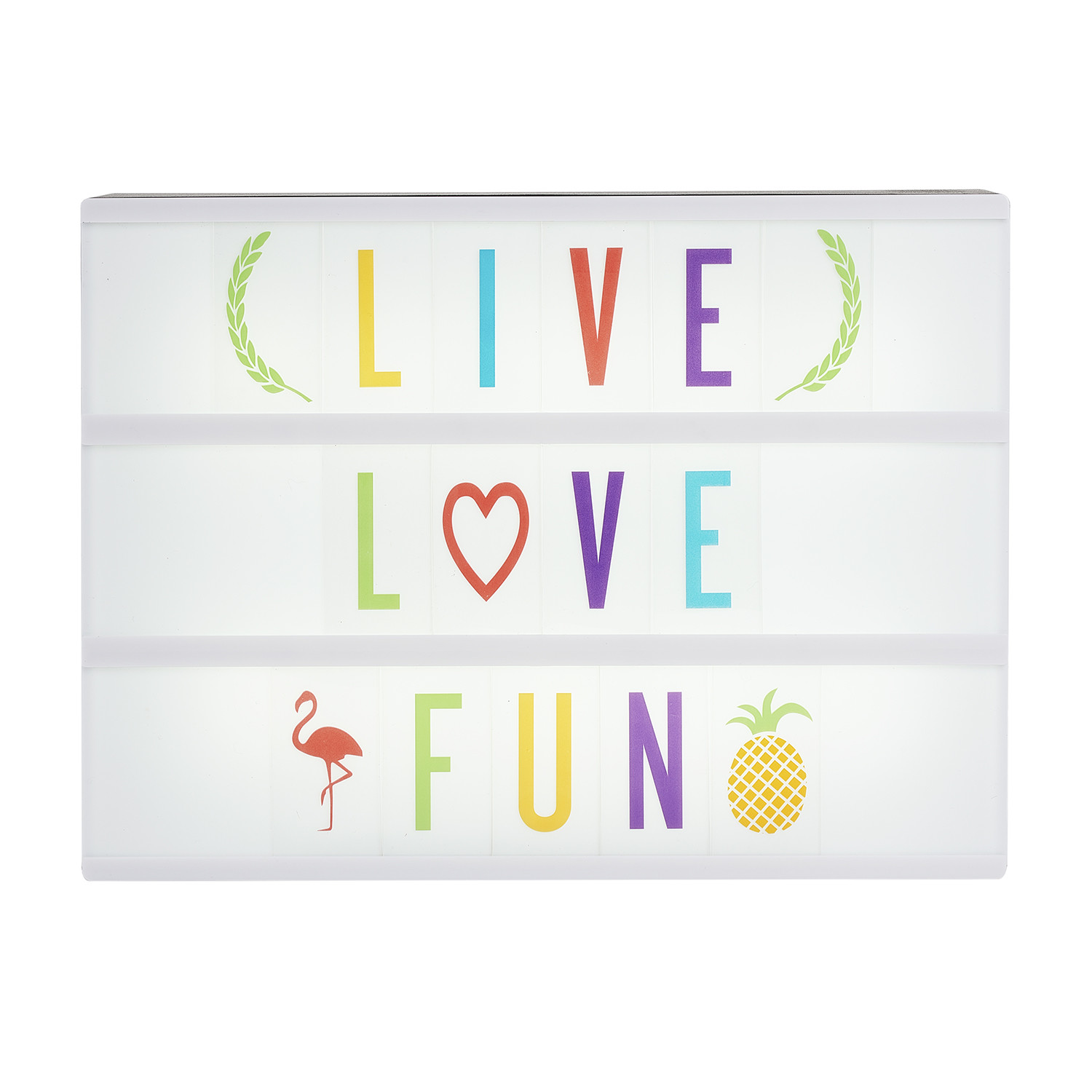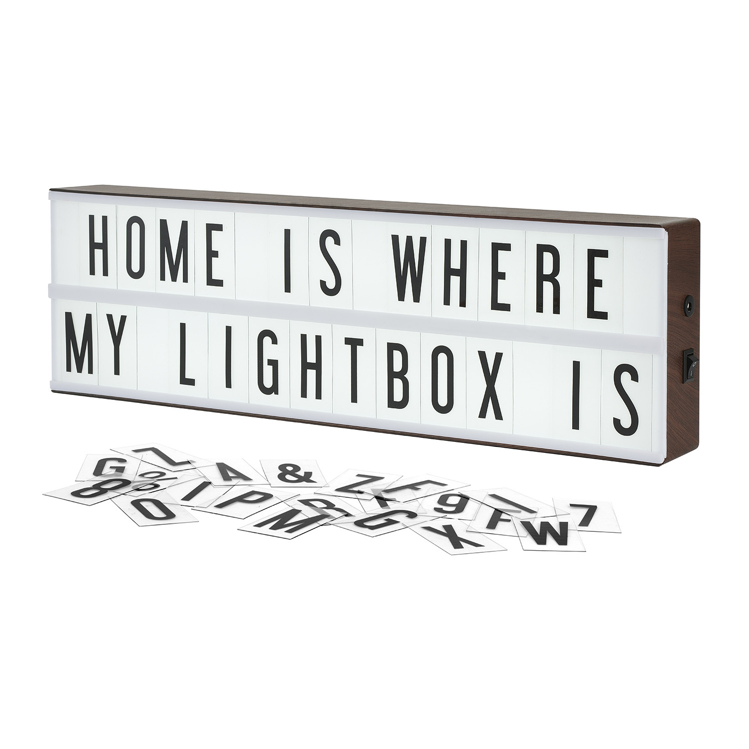 The Vintage Cinema version is finished in a faux wood print, and the long lightbox format fits 14 characters across, making it ideal for spelling out longer phrases or inspirational messages.