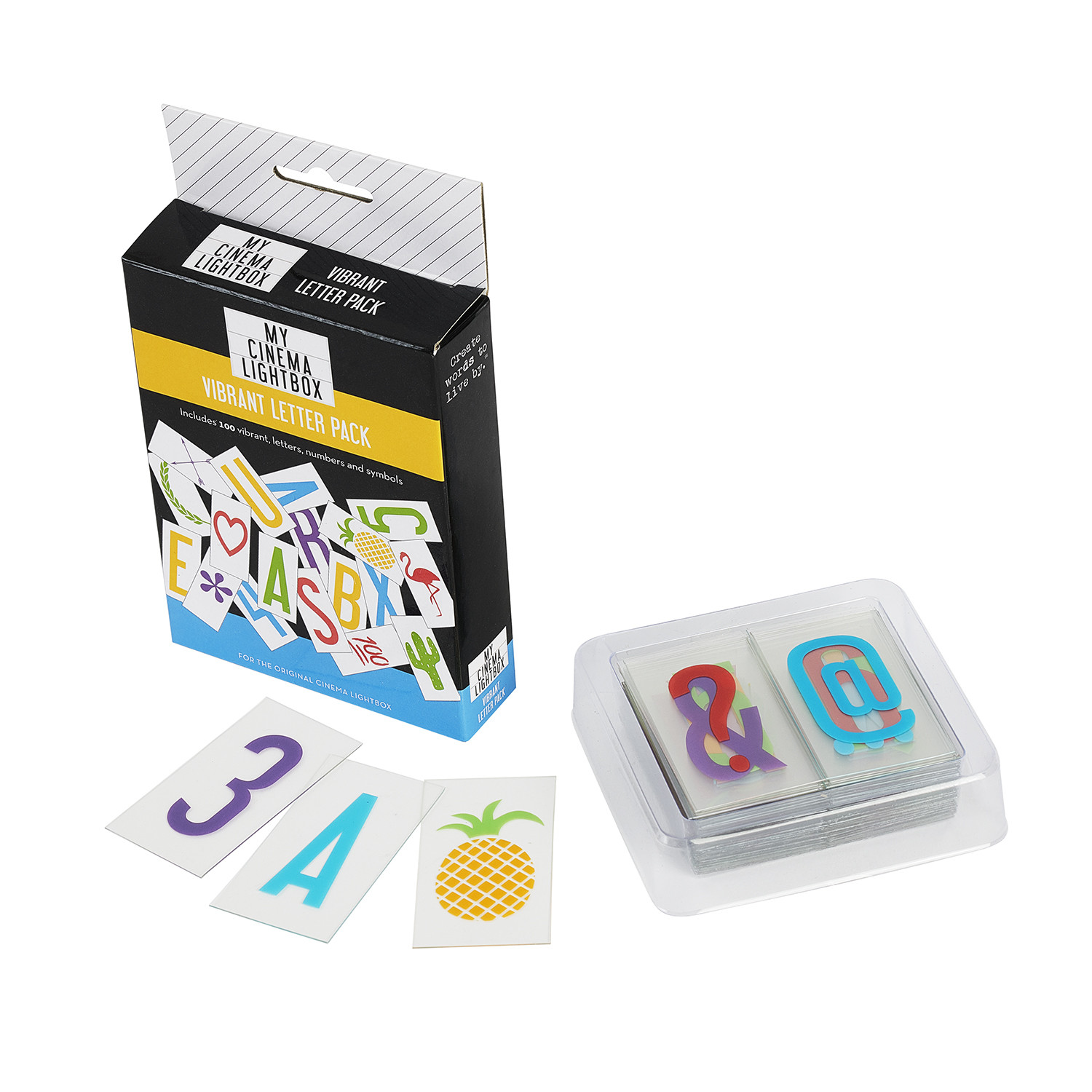 Inspired by retro cinema signs, My Cinema Lightbox is a new way to show your creativity and love for classic glamour. Slide the interchangeable clear plastic letters and characters into slots on the front of the light box to create words and imaginative phrases.
