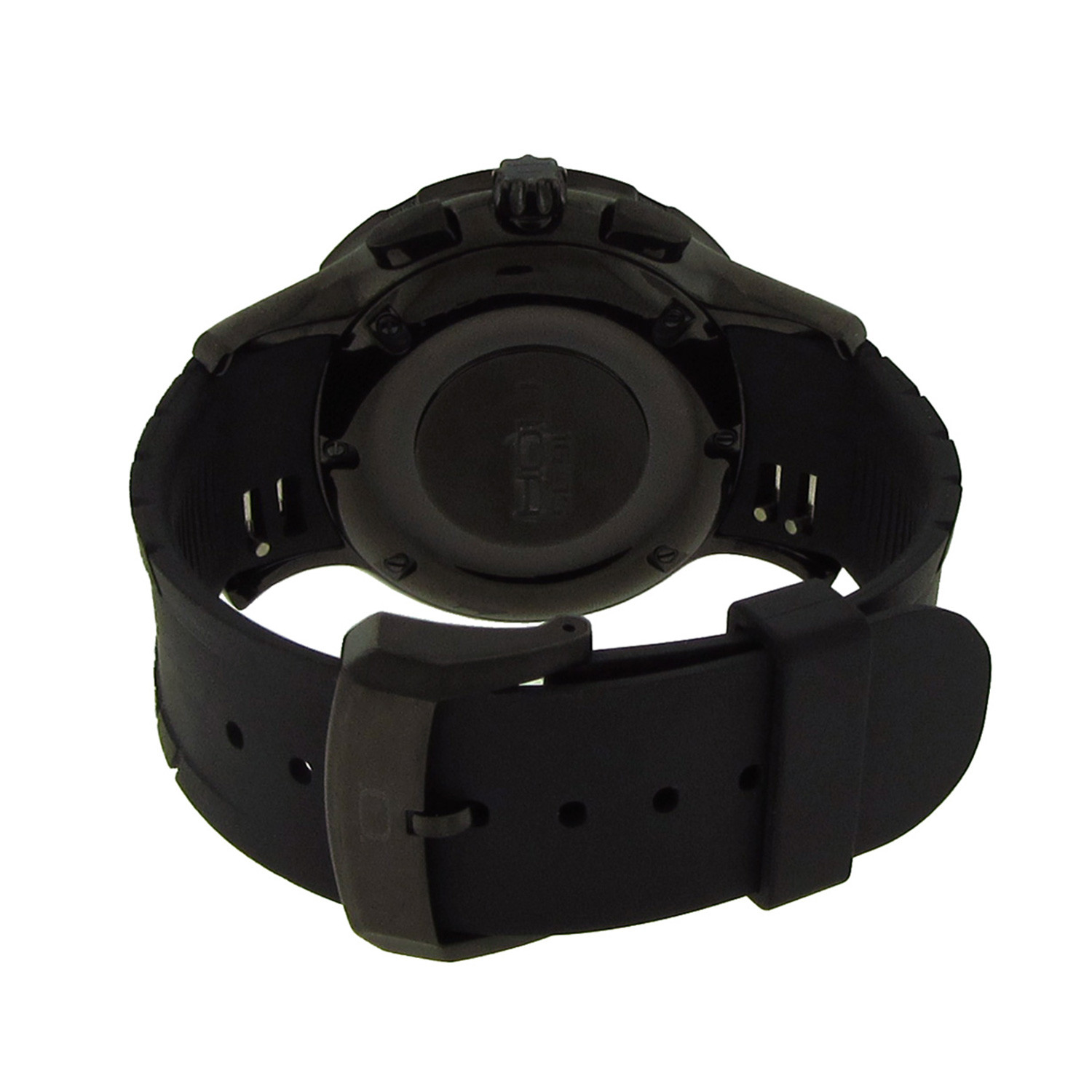 This Chronograph watch with a Swiss quartz movement is a modern, everyday timepiece born out of the legacy of Swiss watchmaking. This handsome piece is bold and weighty with clearly visible markers for enhanced functionality.