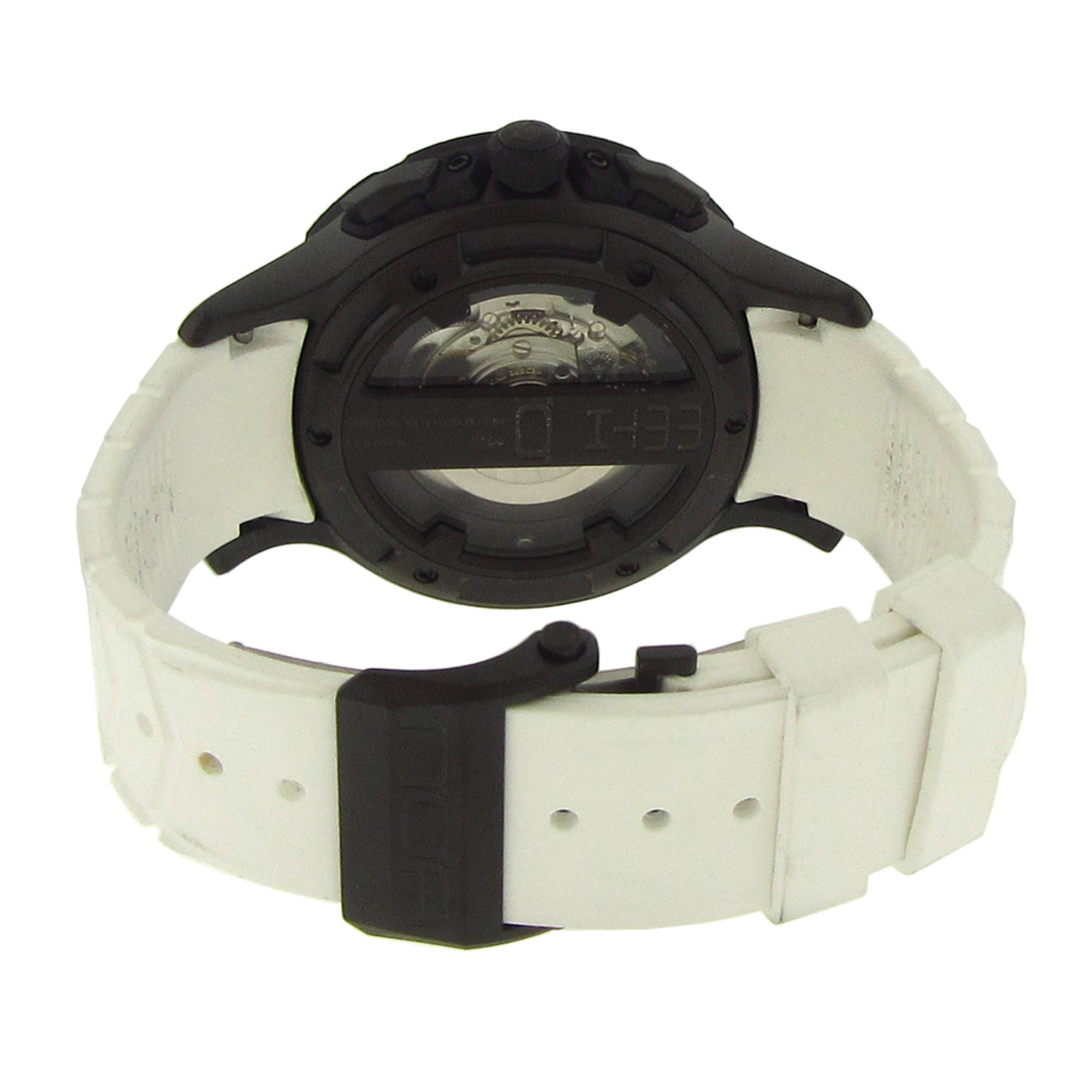 — Strap 1: Caoutchouc White Strap. Stainless Steel Black Pvd Plated Butterfly Buckle Personalized With Logo. Easy Changing Spring Bars