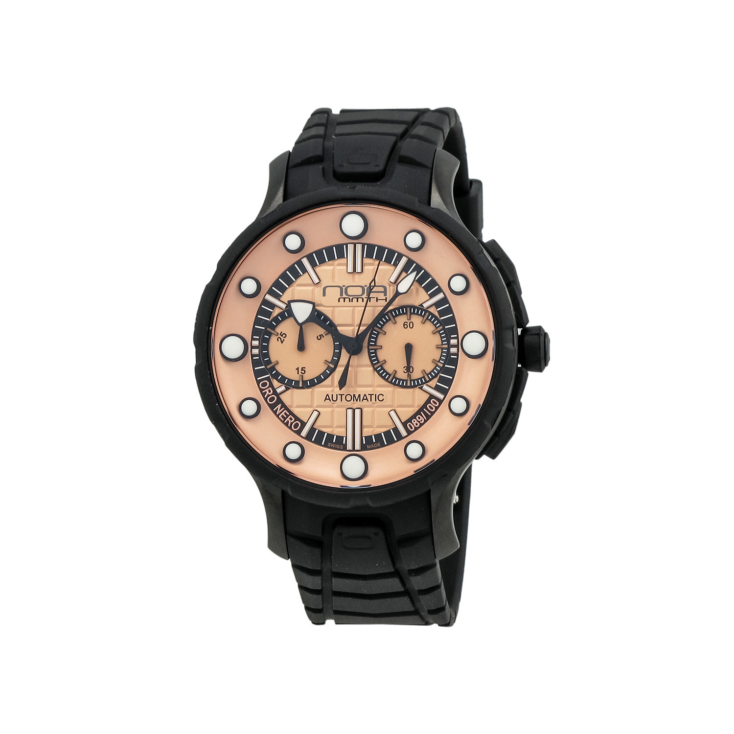 — Dial: Rose gold textured dial with recessed eyes and applied indexes painted with Superluminova