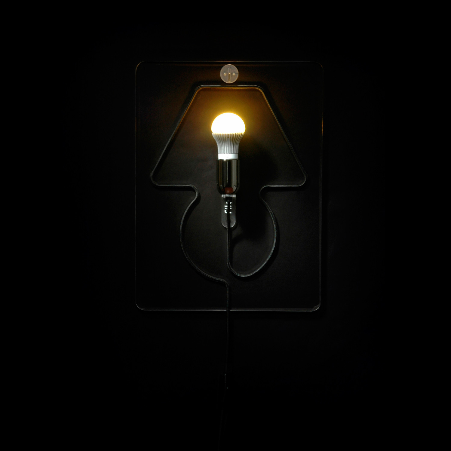 This minimalist lighting piece has computer aided track milling with a computer numerical track machine and interchangeable wires. Change out the colored wire (sold in this sale) for multiple lighting pieces in your home. The Abat Jour sits on a back panel and offers a futuristic silhouette for your space.