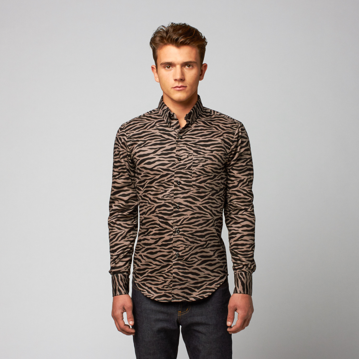 This Zebra Print Shirt, with its muted stripes, is constructed of Japanese cotton, and meant for the bold. It's assembled and sewn in the oldest existing shirt factory in North America, which was founded in Quebec in 1894.