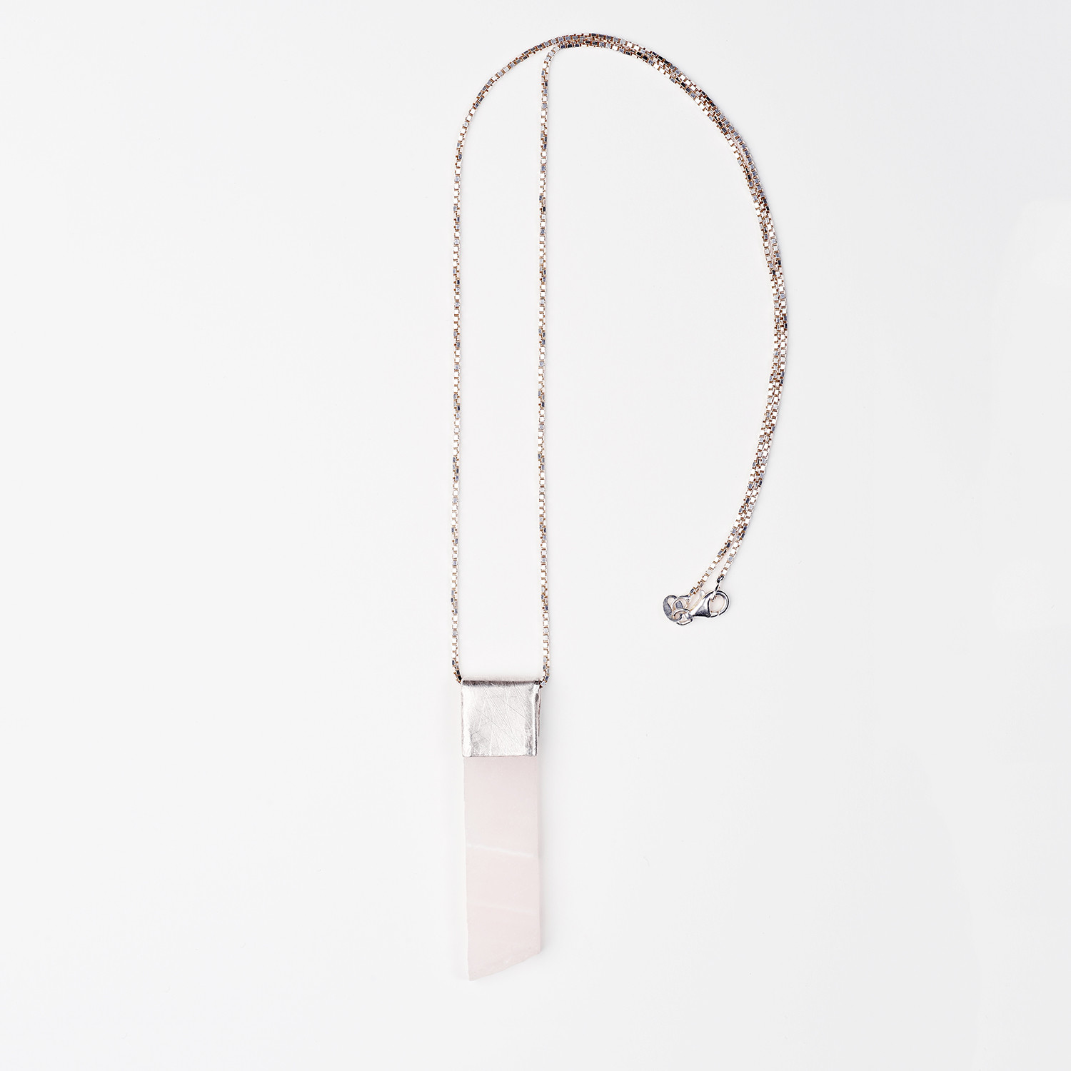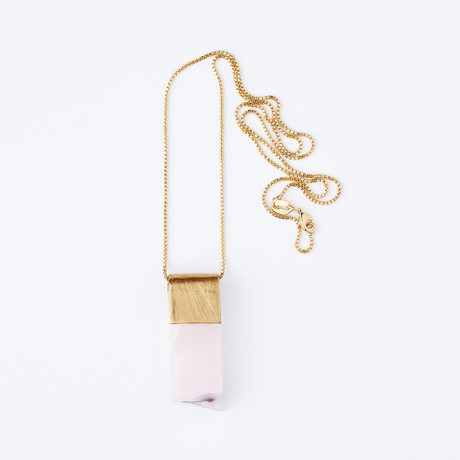 The Mangano Calcite Necklace is a gorgeous piece with an organic feel. A cut Mangano Calcitewith stone is set in your choice of metal with a 20" chain.