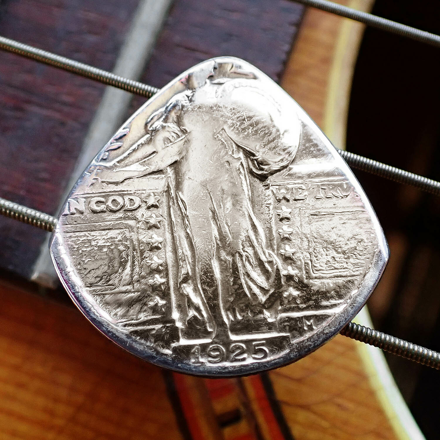 Silver Standing Liberty Quarter Coin Guitar Pick