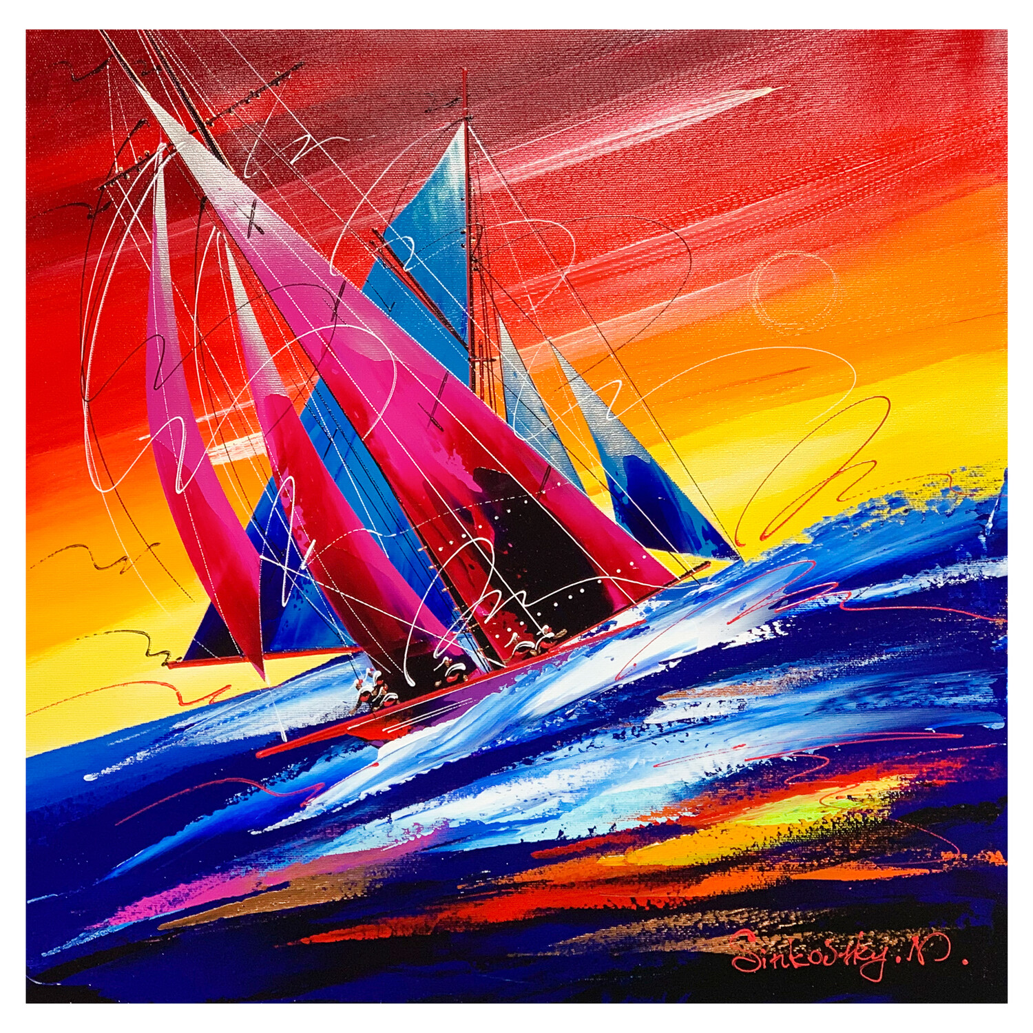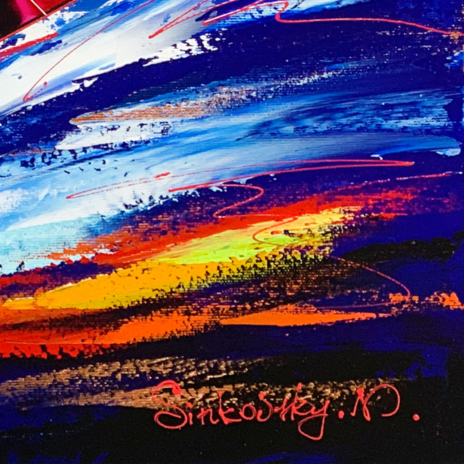 Thanks to her background in architecture, Natalie Sinkovsky’s painting style is largely inspired by abstract art and modern design. She uses a palette knife to apply thick layers of paint onto canvas. Once the layers have dried, she then returns to add the graphic elements. This collection of original acrylic paintings showcase Sinkovsky's optimistic view on life through her use of bright, cheerful colors.
