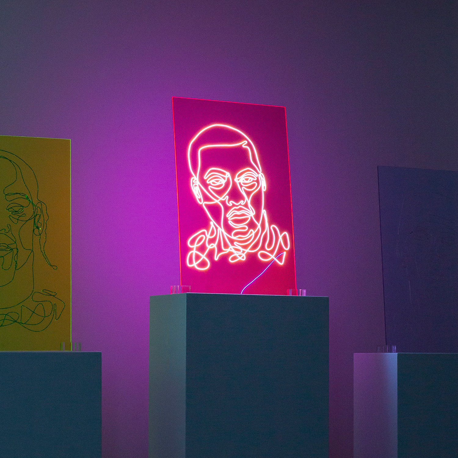 With a unique interest and approach to street culture and urban art, UK-born mixed media artist Natalie Wong, now based in Hong Kong, has earned global acclaim for her provocative work. Red Nas is an original piece from her Neon Rap Portraits collection, recently exhibited in Hong Kong. For each work, Wong created a continuous line drawing of the iconic rapper, reflecting the fundamental technique of freestyle rapping. The drawings are then traced with electroluminescent wire mounted on acrylic.