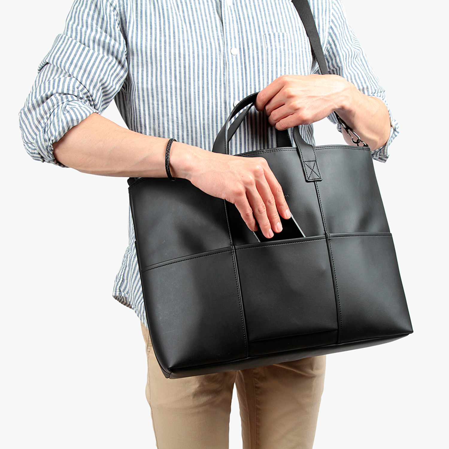 Refined and lightweight, the Stockton Tote is big enough to fit a 15" laptop comfortably. Whether you carry it by the handles or with the adjustable shoulder strap, it's a stylish way to stay organized.