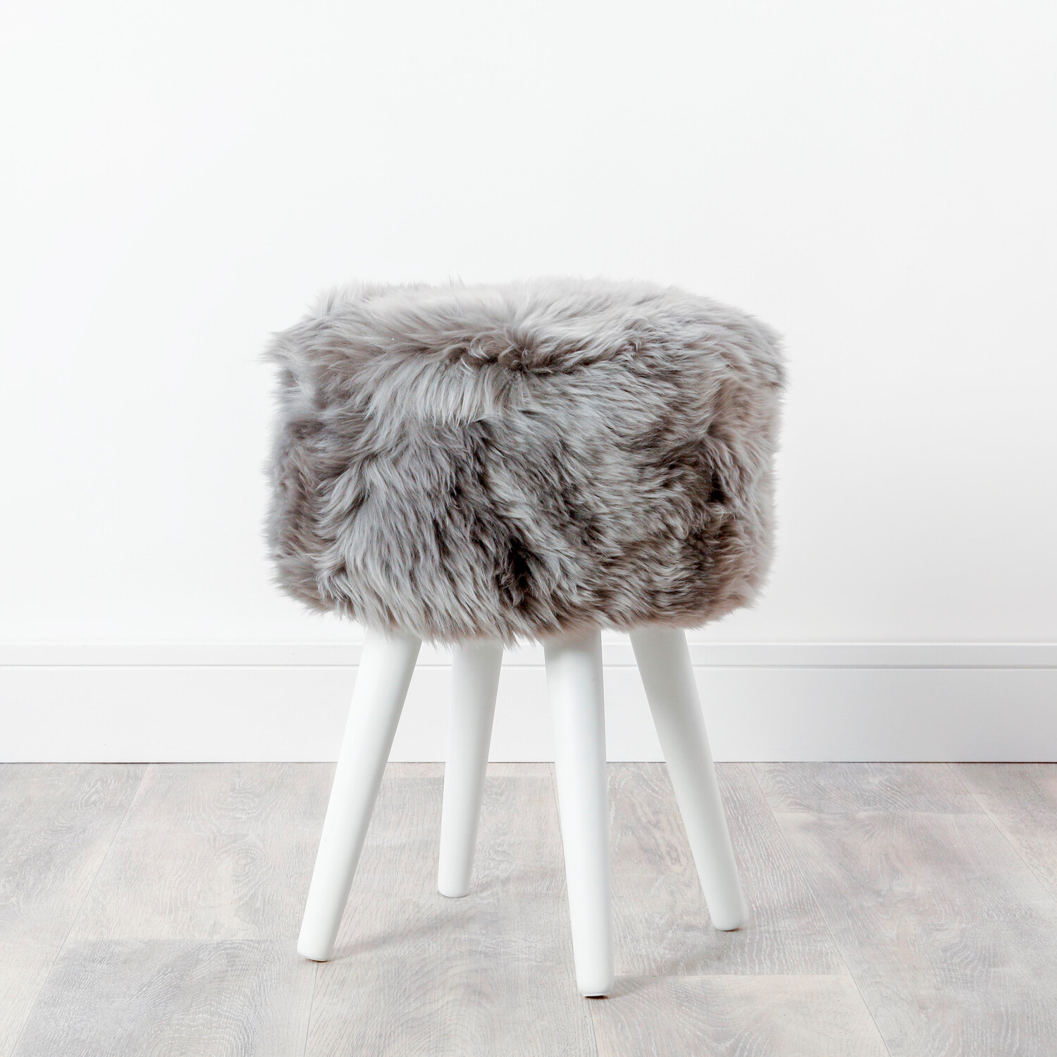 Gray Sheepskin Wood Stool // White Legs