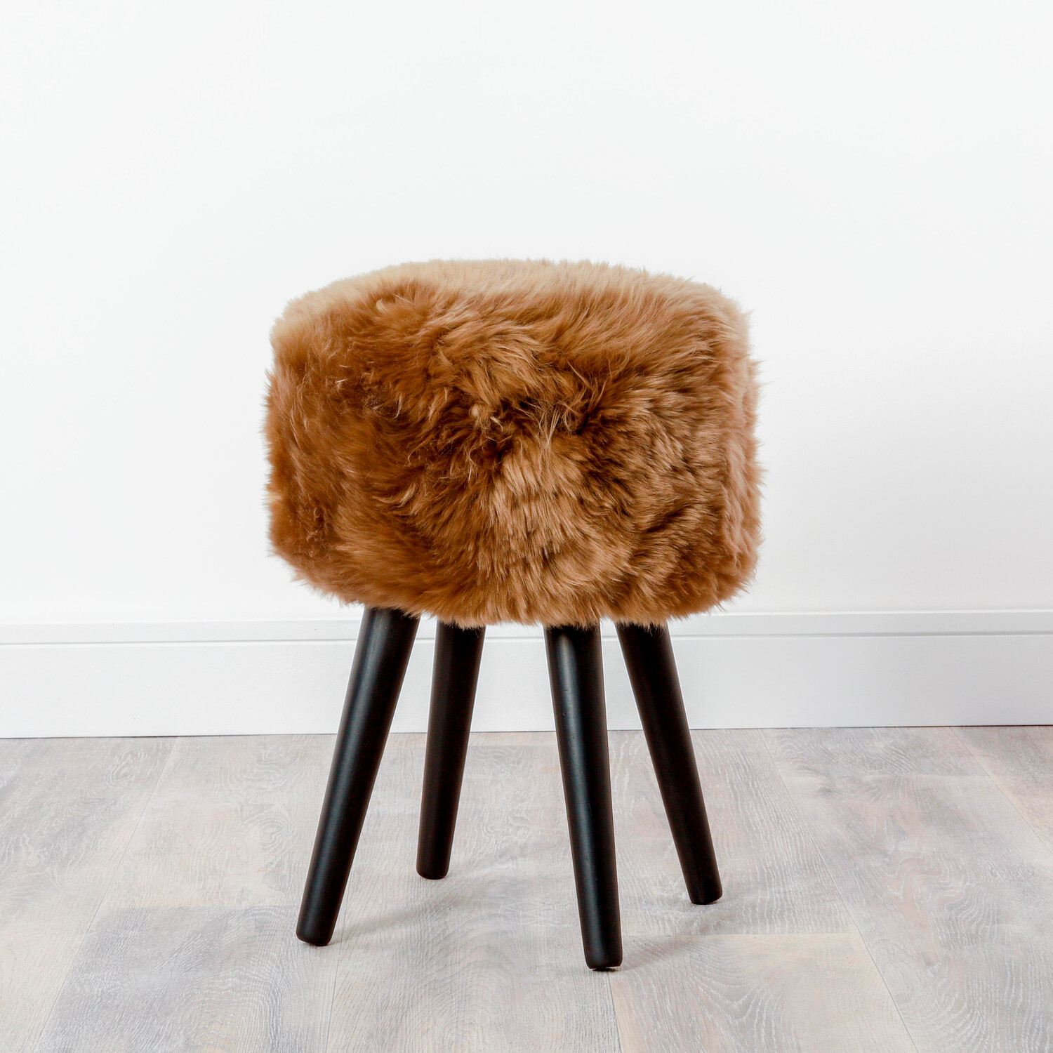 Light Brown Sheepskin Wood Stool // Black Legs