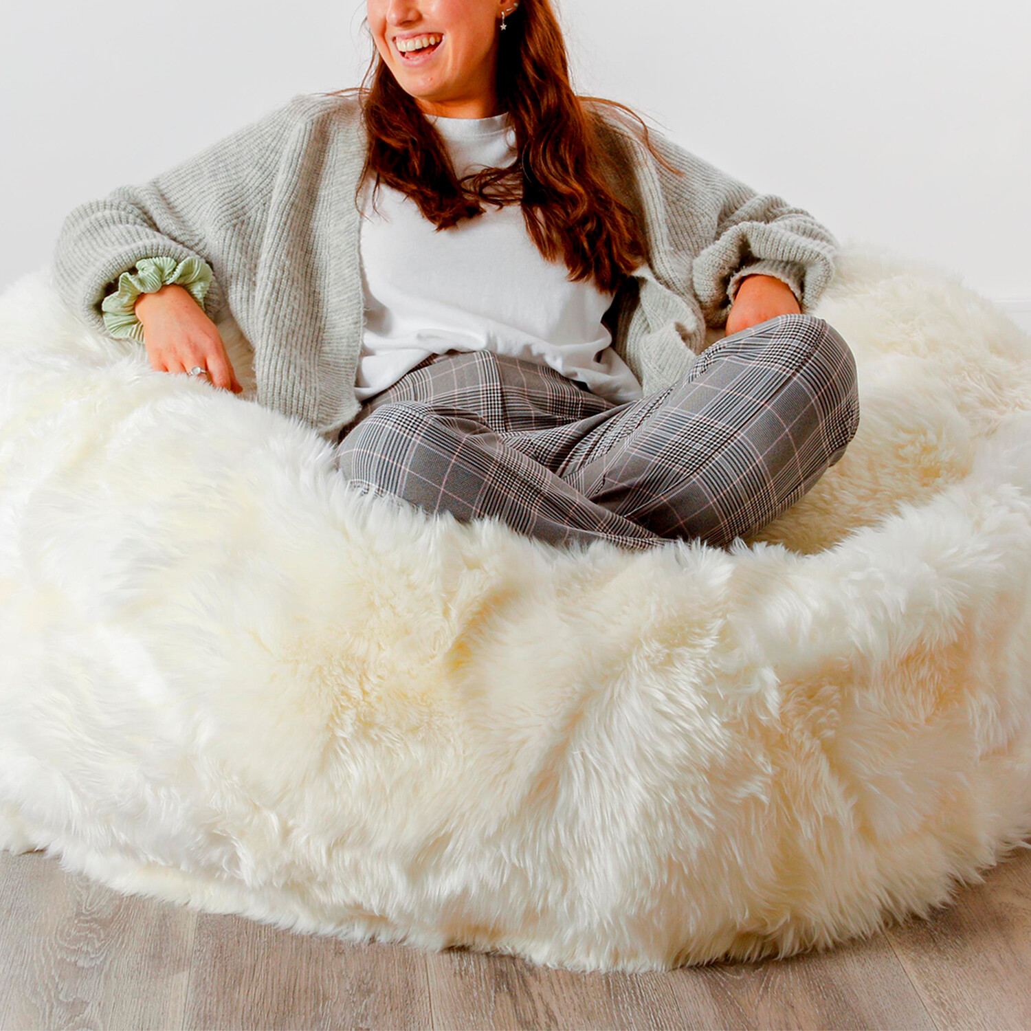 This extra-large bean bag is crafted using authentic New Zealand sheepskin, making it the ultimate spot to lounge. Sink into its soft comfort and enjoy every moment. This is guaranteed to be the best seat in the house.