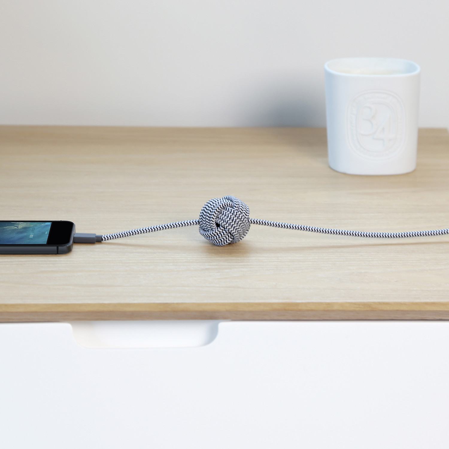 None of us enjoy fumbling around for dropped cables or straining to use our devices when they're recharging. Which is why the NIGHT Cable gives you a 10-foot range to comfortably charge anywhere. Its weighted knot can even be anchored to any flat surface, so it's there when you need it next. You can even change the position of the knot by sliding it along the cable. With a retro inspired aesthetic, it's built from crazy durable braided nylon that won't fray, fade, or tangle.