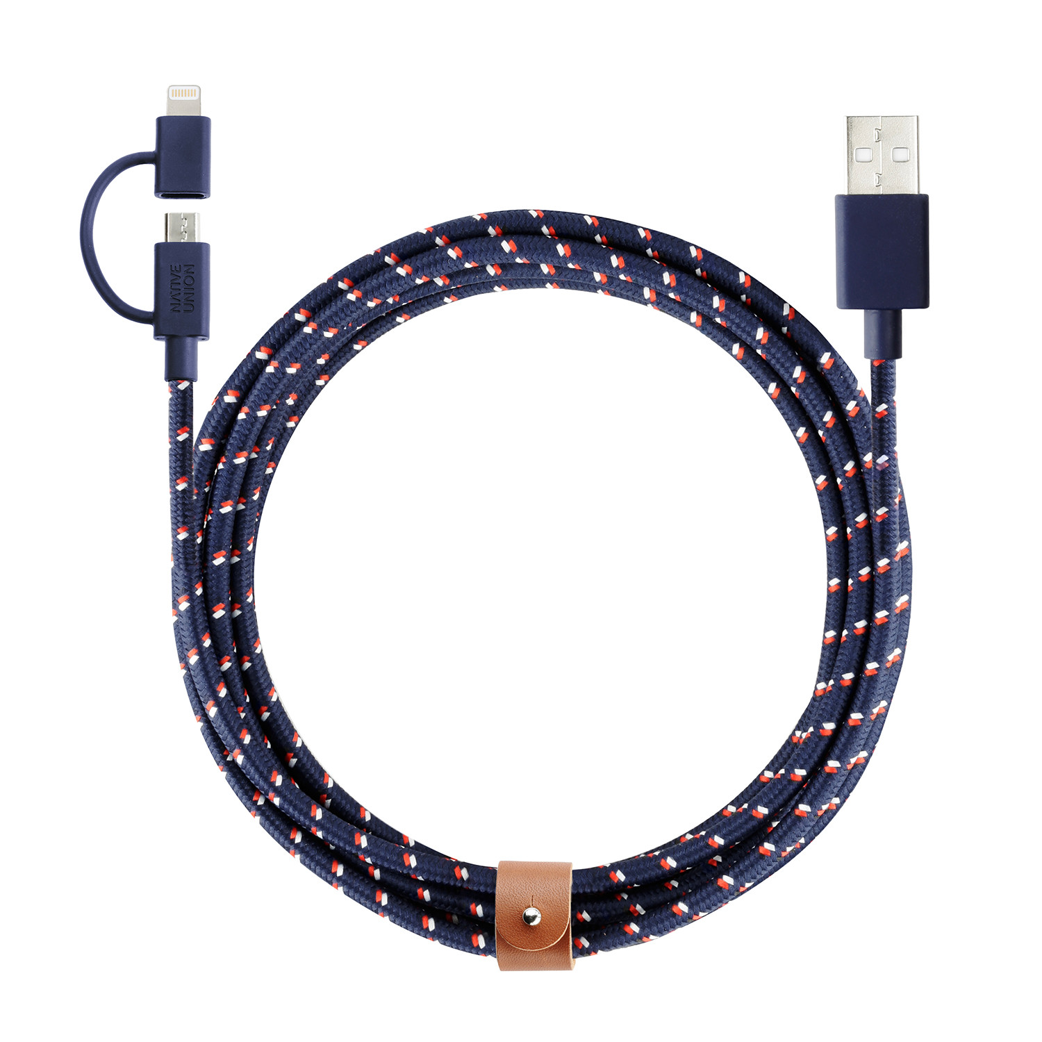 Imagine if you could have one charging cable for all your devices. Well, now you can. With its 2-in-1 Micro-USB to Lightning connector, Belt Cable Twin Head can be used to conveniently charge all your micro-USB and Apple Lightning devices with one convenient cable. No need to carry multiple charger, just wrap up this handsome cable in its durable leather strap and you're ready to go.