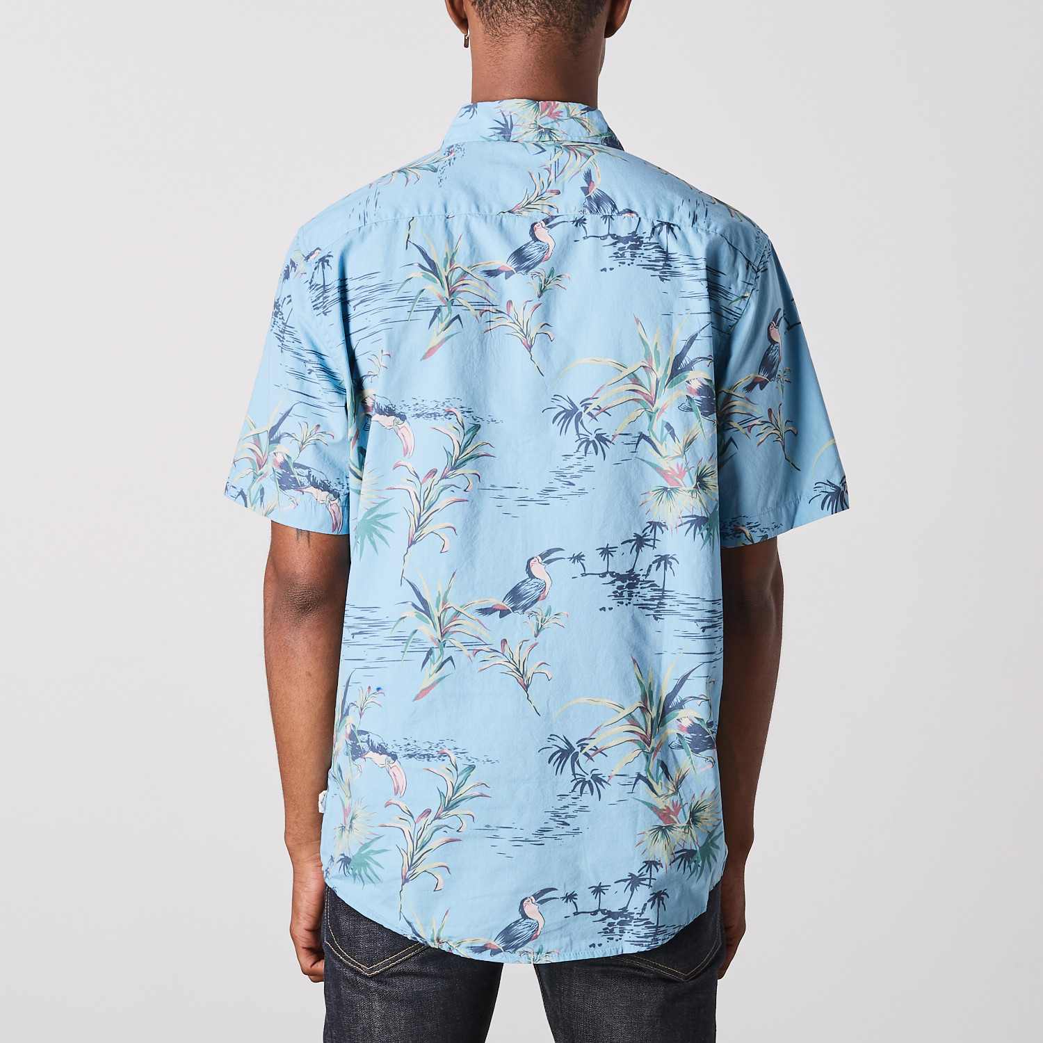 Visitor // Bird Print Short Sleeve Shirt // Blue