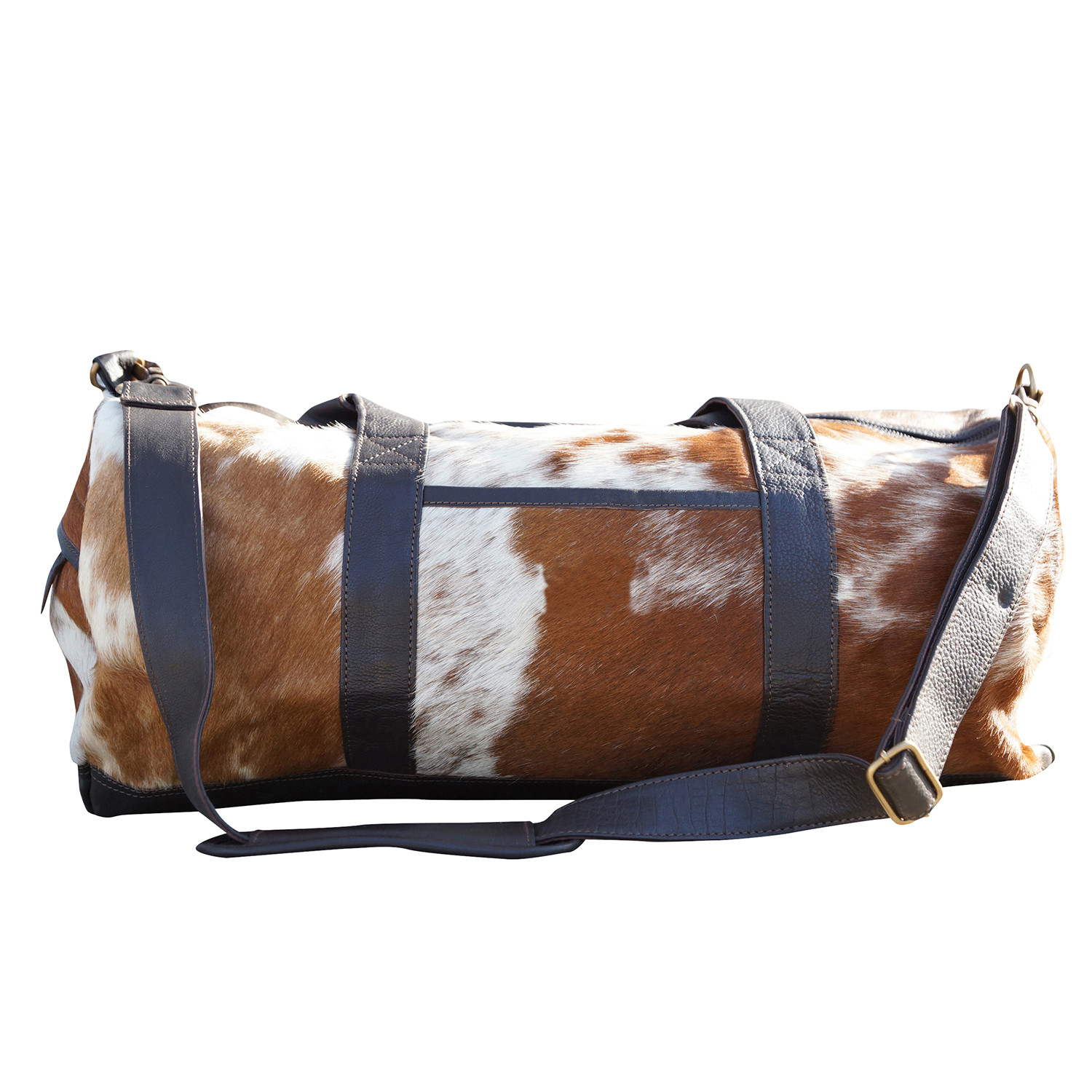 Even the most spontaneous travelers need the perfect weekender and it has arrived. This chic, cowhide bag is ready to jet at a moment's notice with a unique natural exterior, supple cotton lining, two inside pockets, one zippered pocket and a removable shoulder strap. Pack your bag and take to the road with this rugged style.