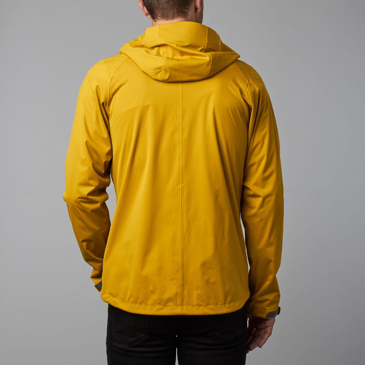This three-layer hard shell Rebound Jacket is crafted from a recycled poly stretch knit fabric that protects against wind, rain, snow and sleet while still being sleek, minimal and quiet.