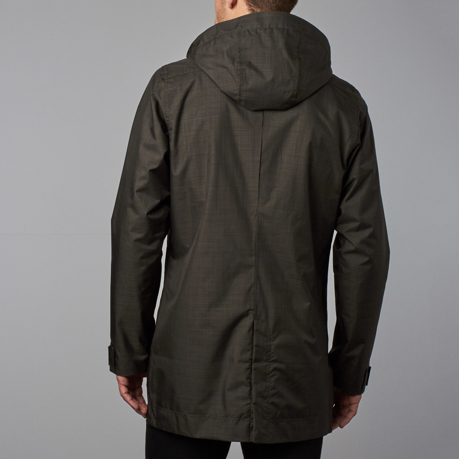 Waterproof, breathable and lightweight, the Succinct Trench puts a performance spin on the classic trench. This urban-inspired jacket combines 100% recycled poly fabric, a zip-off hood and stowable reflective tape in a two-layer, packable hard shell. Up close, the heathered yarn creates surprising depth and visual texture, reminiscent of men's suiting.