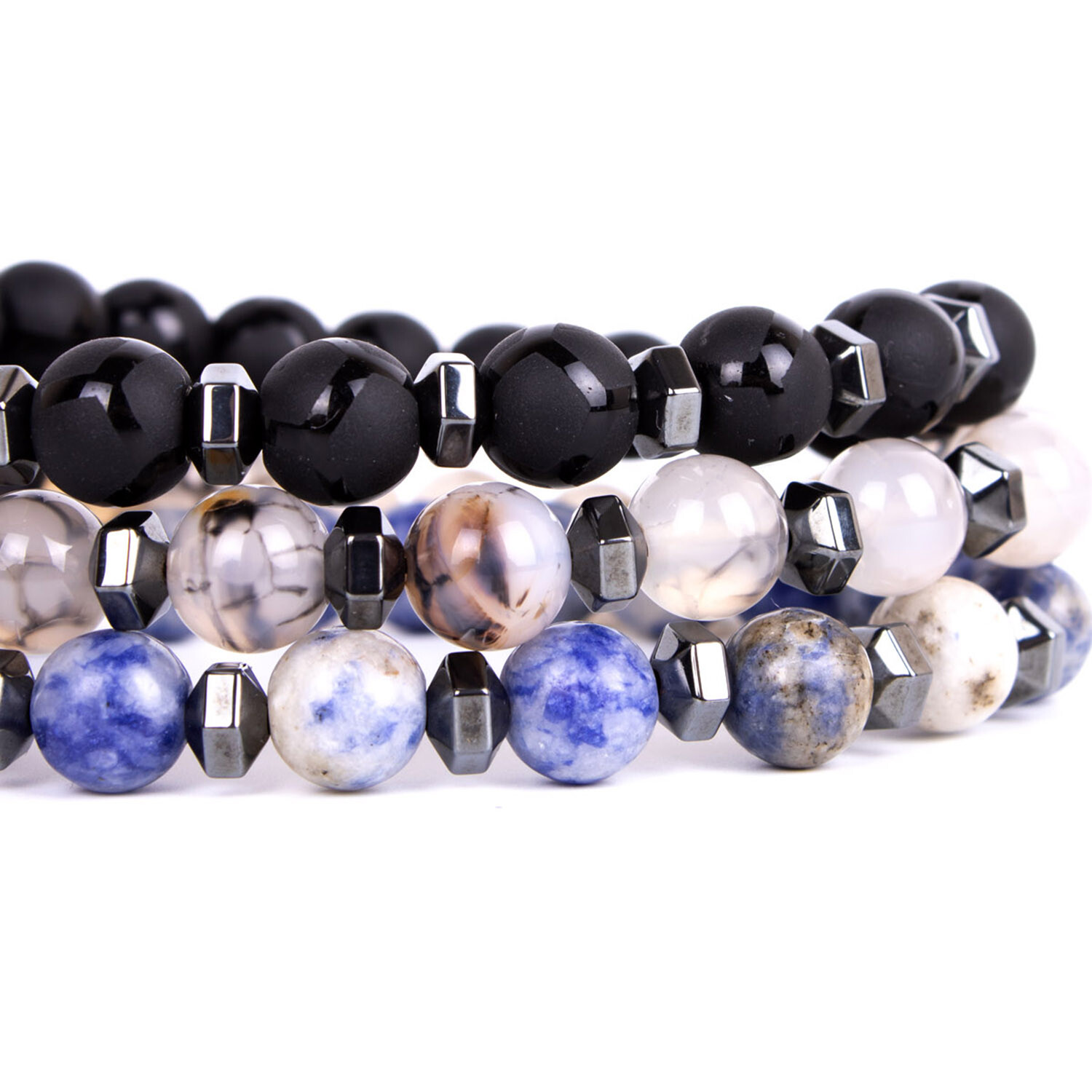 Beaded Agate + Sodalite + Onyx + Hematite Bracelet Set // Multicolor