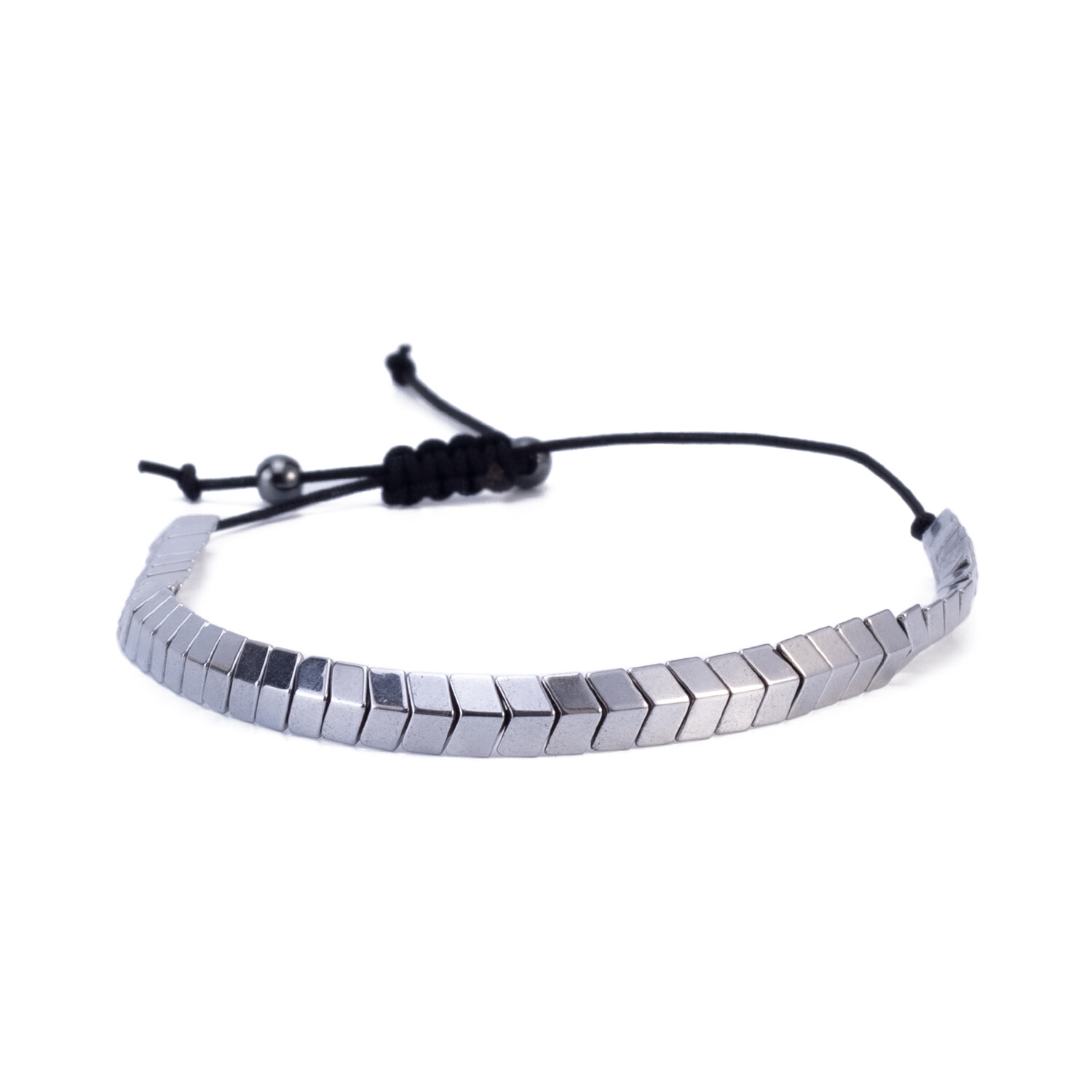 Beaded Point Arrow Shape Hematite Bracelet // Gray