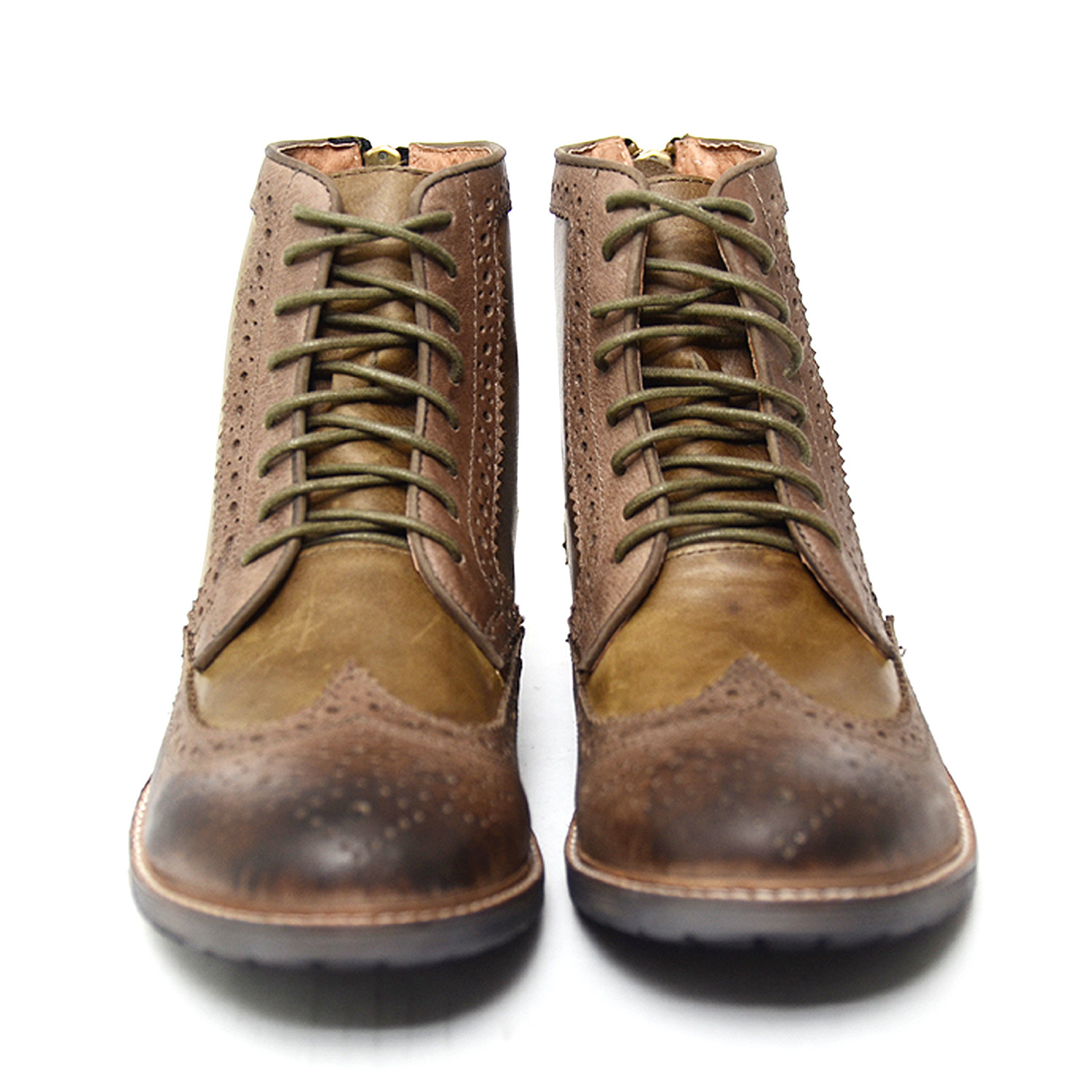Hoo Leather + Suede Brogue Wingtip Angus Boots