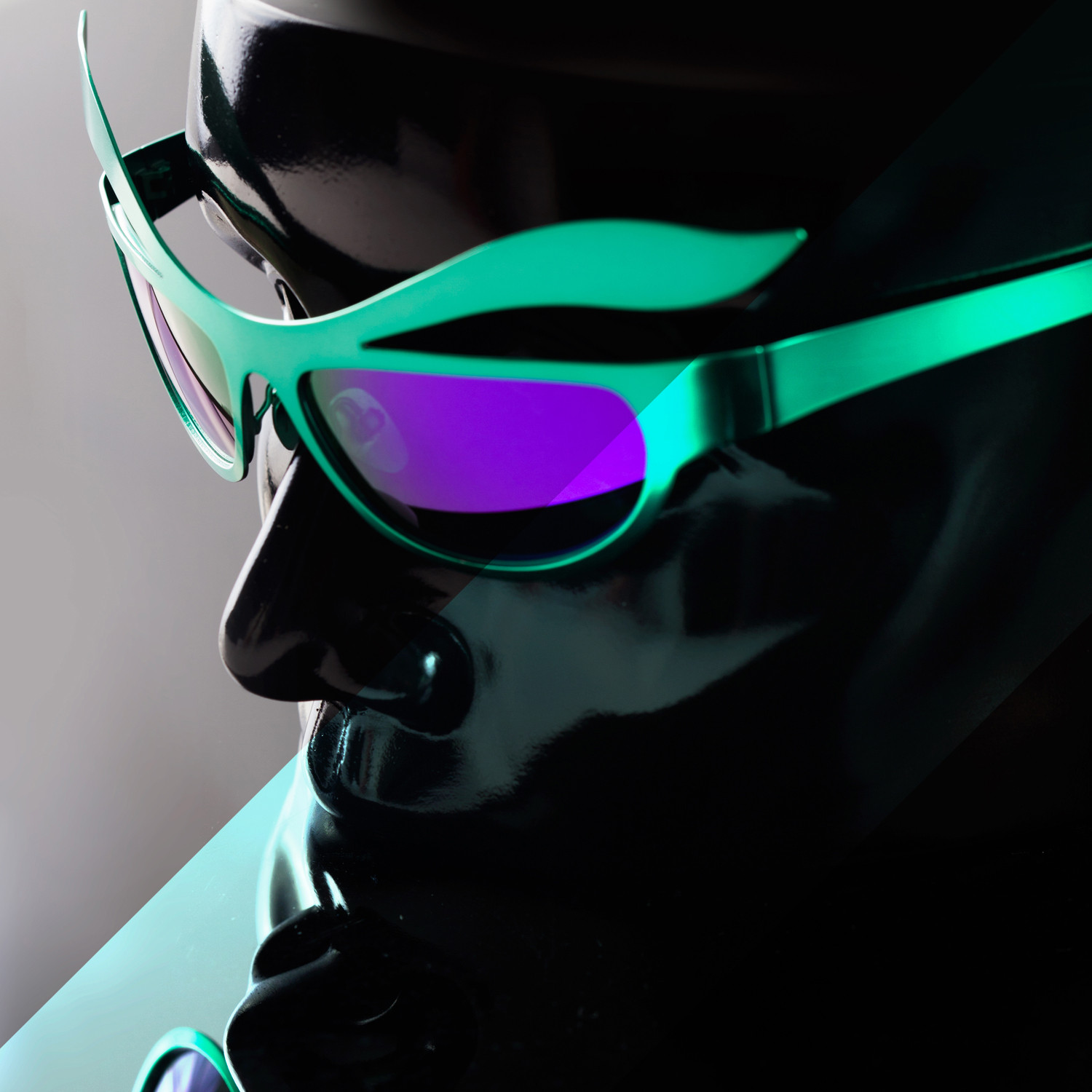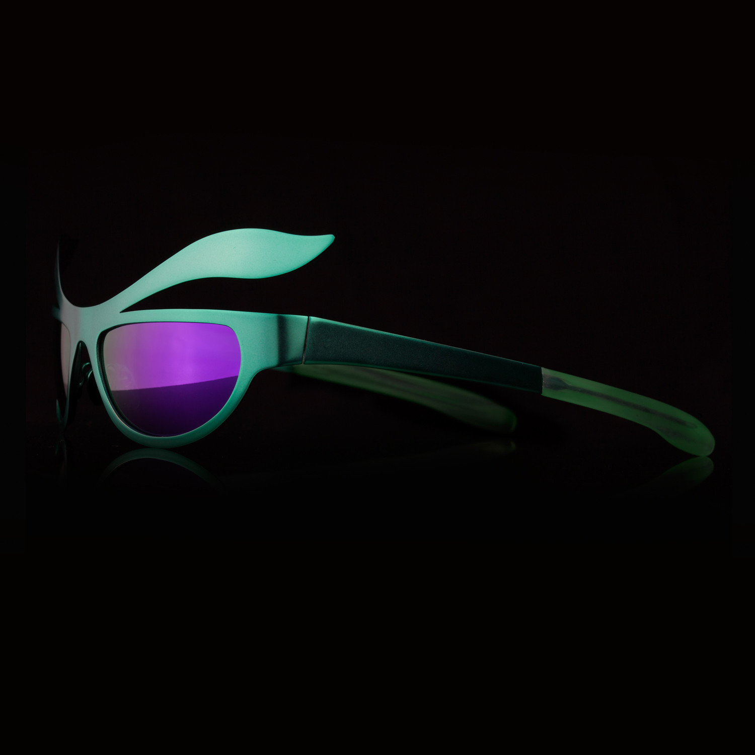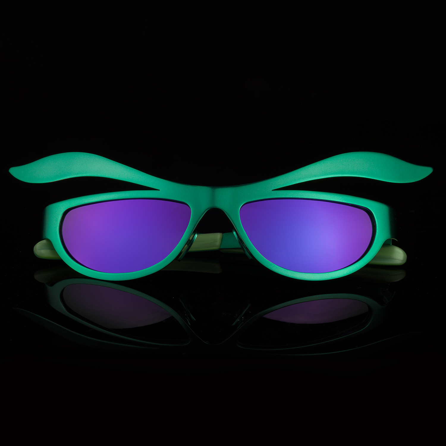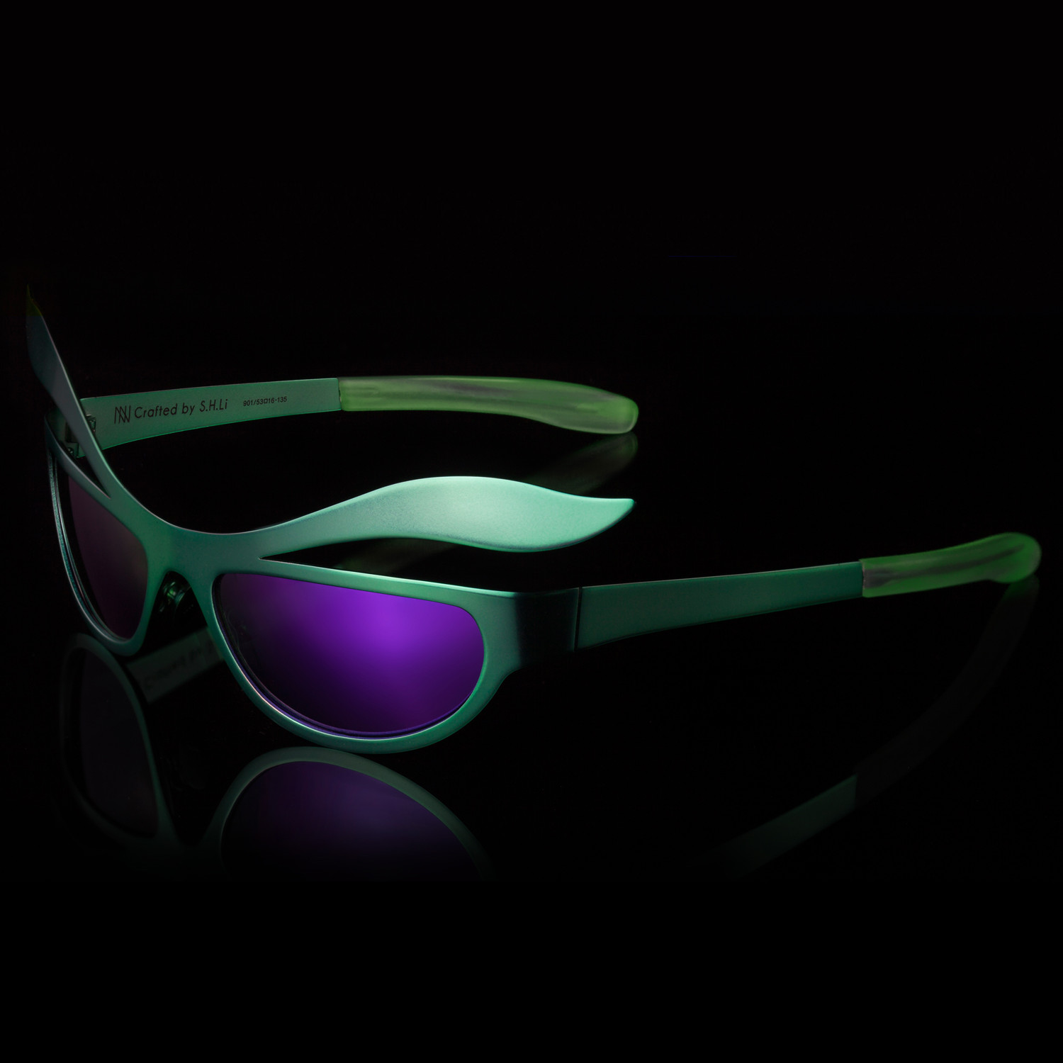 Maanvlinder, named for the luna moth, is an extraordinary model from Neo-Ne. Inspired by '50s fancy sunglasses, the Maanvlinder has been updated with a metallic frame and sports eyewear style. The unusual form and color combination links it to its namesake insect .