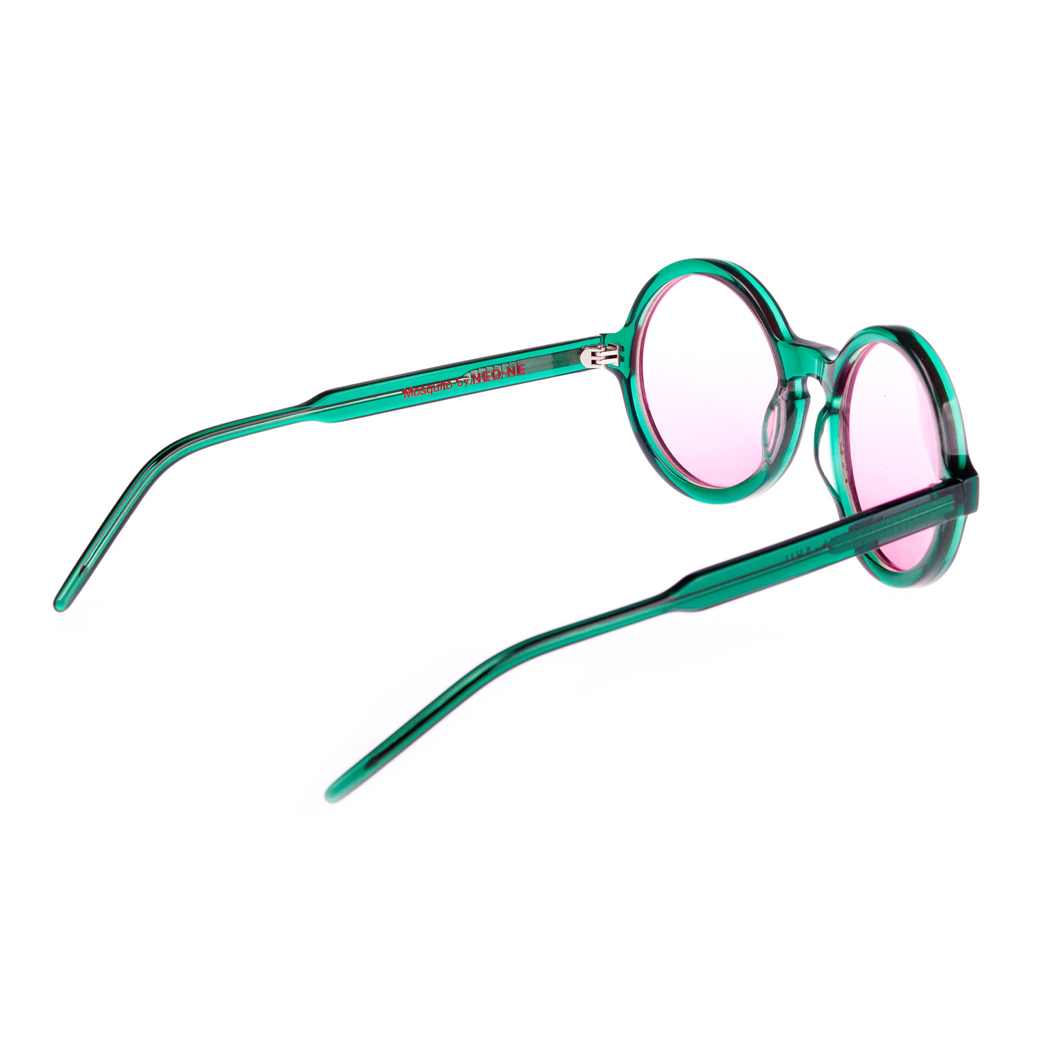 A study in contrast, the Mosquito juxtaposes a clean, round green frame with playfully tinted lenses. Mod and a little rebellious, you'll love how they look when wearing a graphic sweater or a streetstyle-ready outfit.