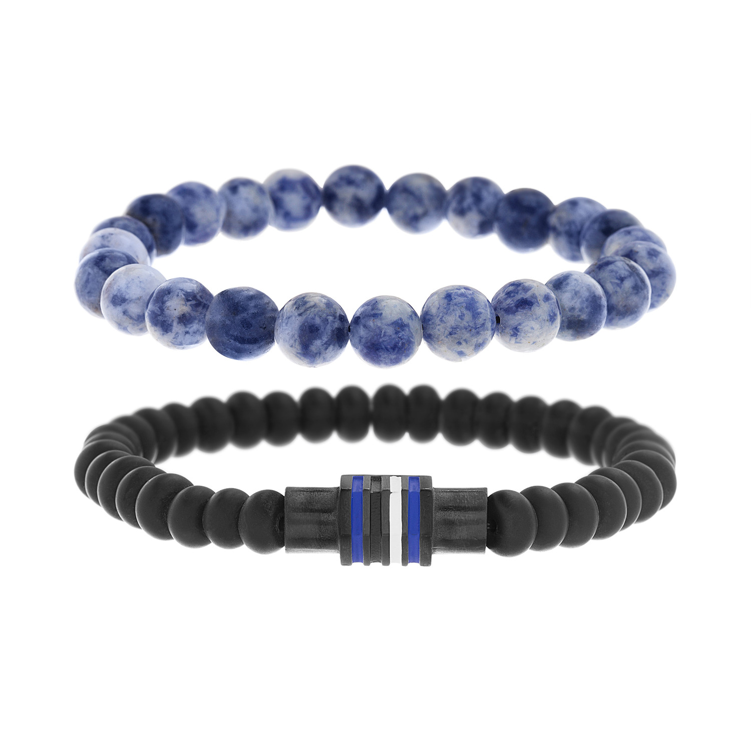 IP Lapis Beaded Stretch Duo Bracelet Set // Black + Blue + White