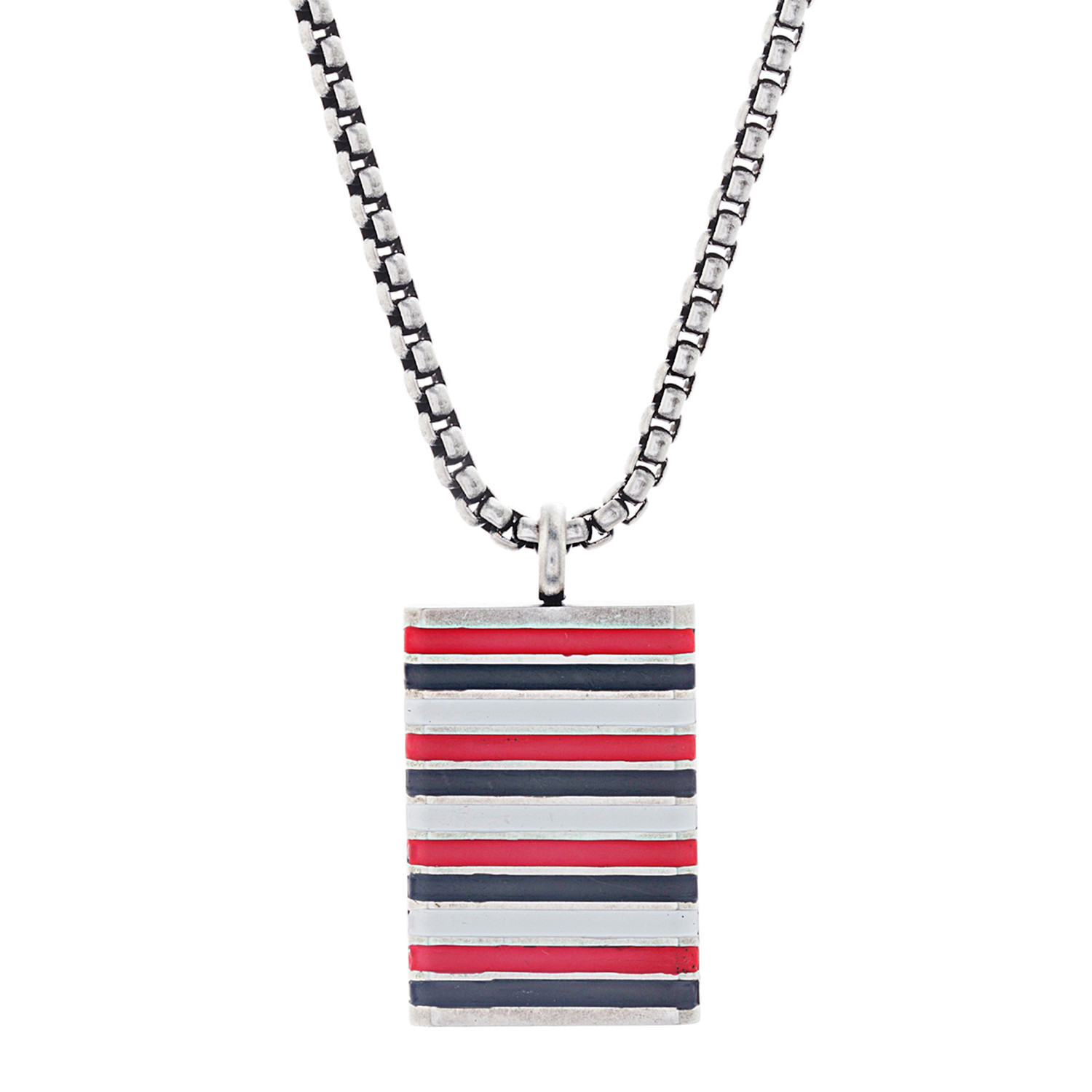 Stripe Pendant On Rolo Box Chain Necklace // Red + Gray + White