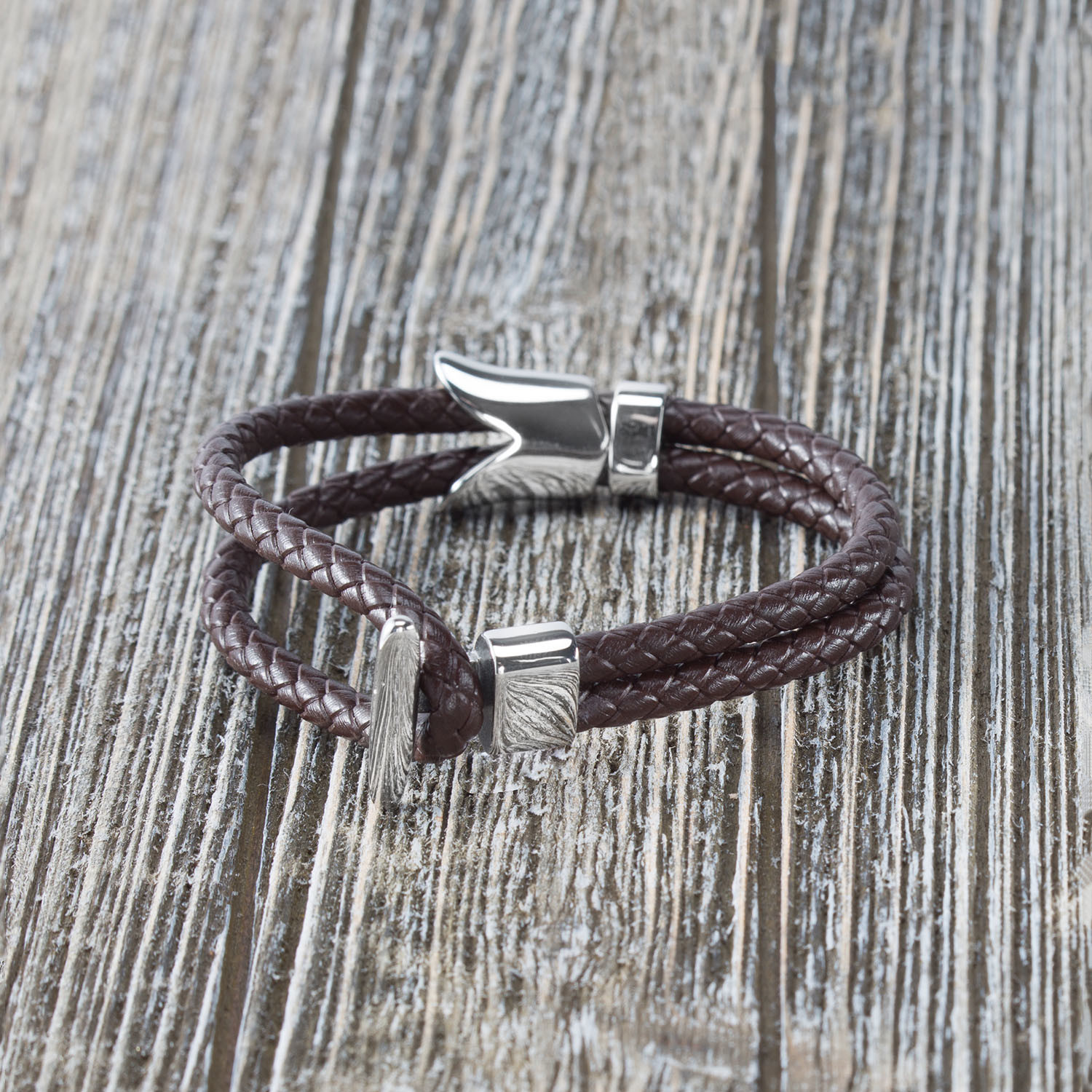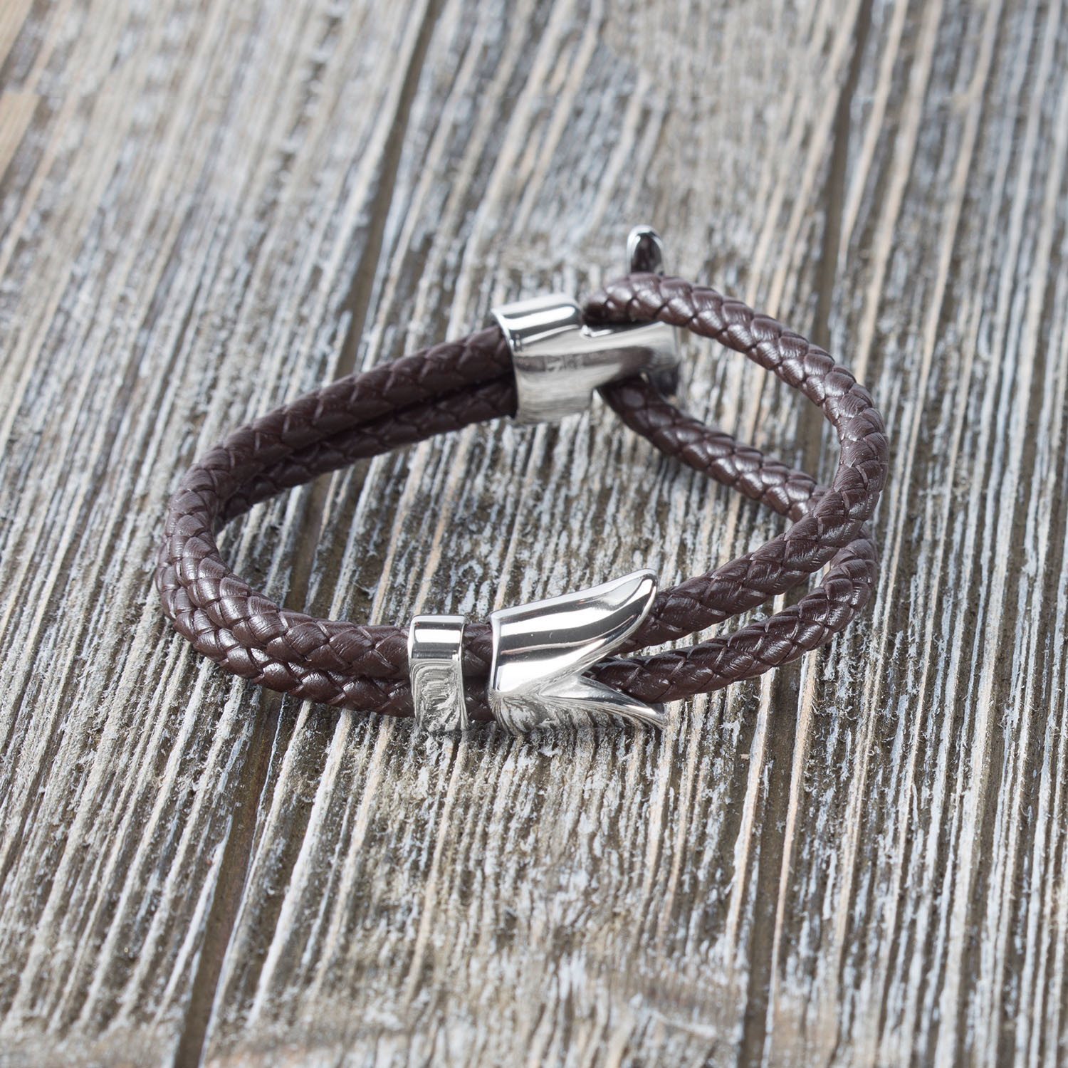 Stainless Steel Anchor 8.5" Brown Double Strand Leather Men's Bracelet