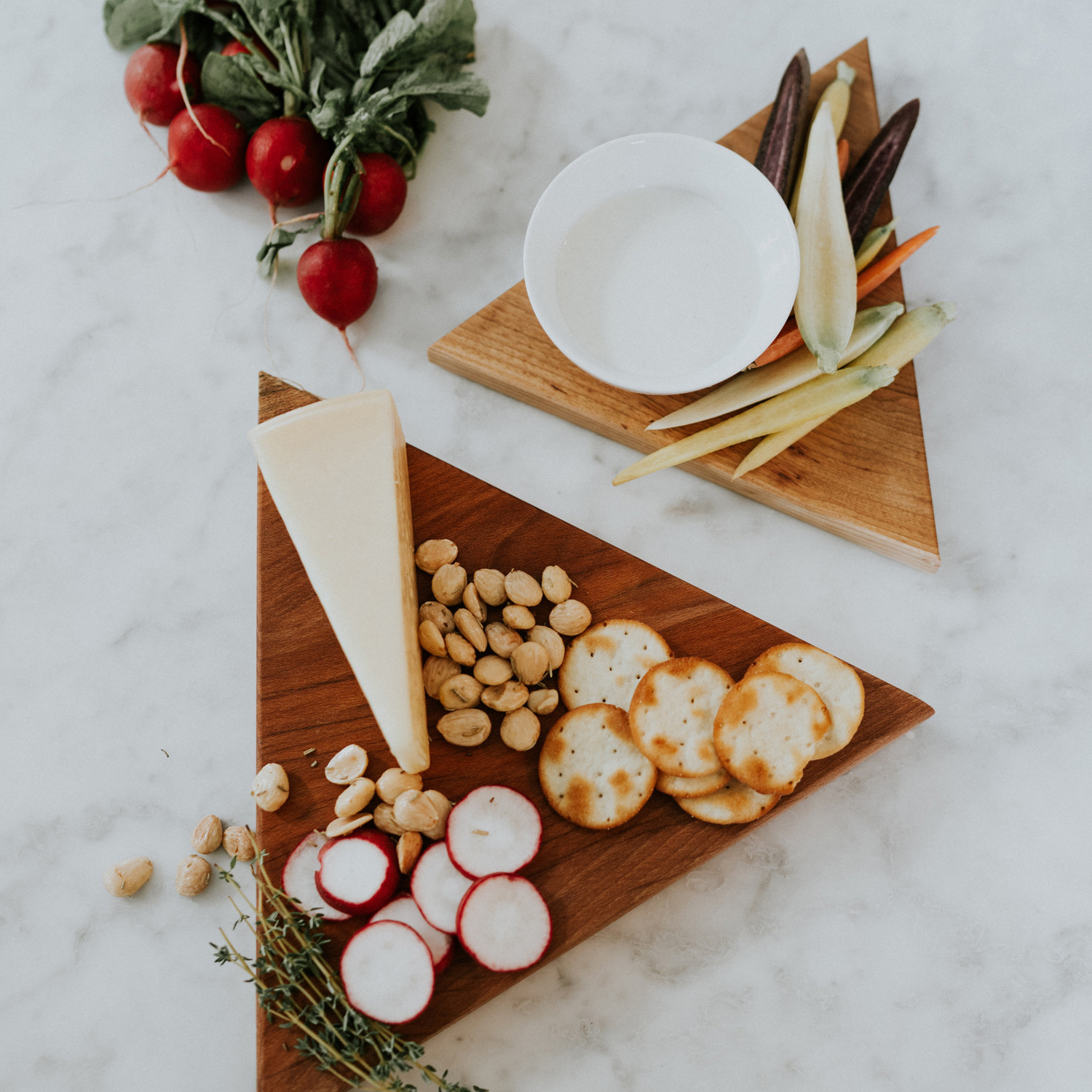 The Tria Serving Board offers and innovative design with zero environment impact. Great for hors d'oeuvres or an anytime snack, this triangular beauty also doubles as a trivet. The board is hand-milled and fashioned from reclaimed wood, giving it an authentic, antique finish that is durable and long lasting.