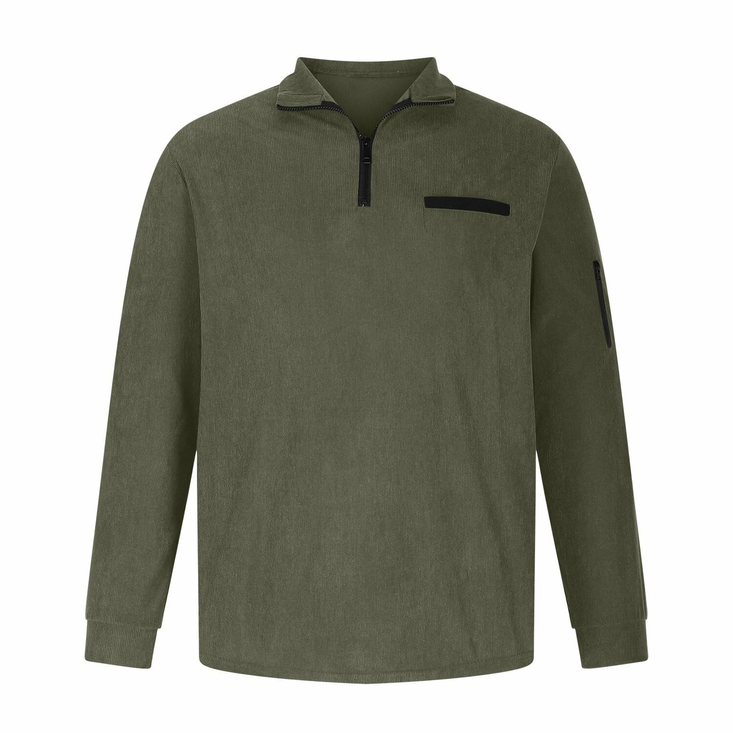 Fleece Quarter-Zip Long Sleeve Ribbed Shirt // Army Green