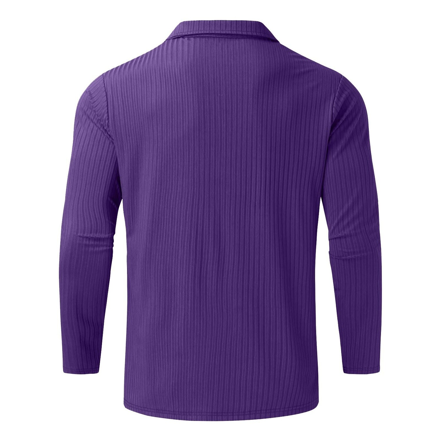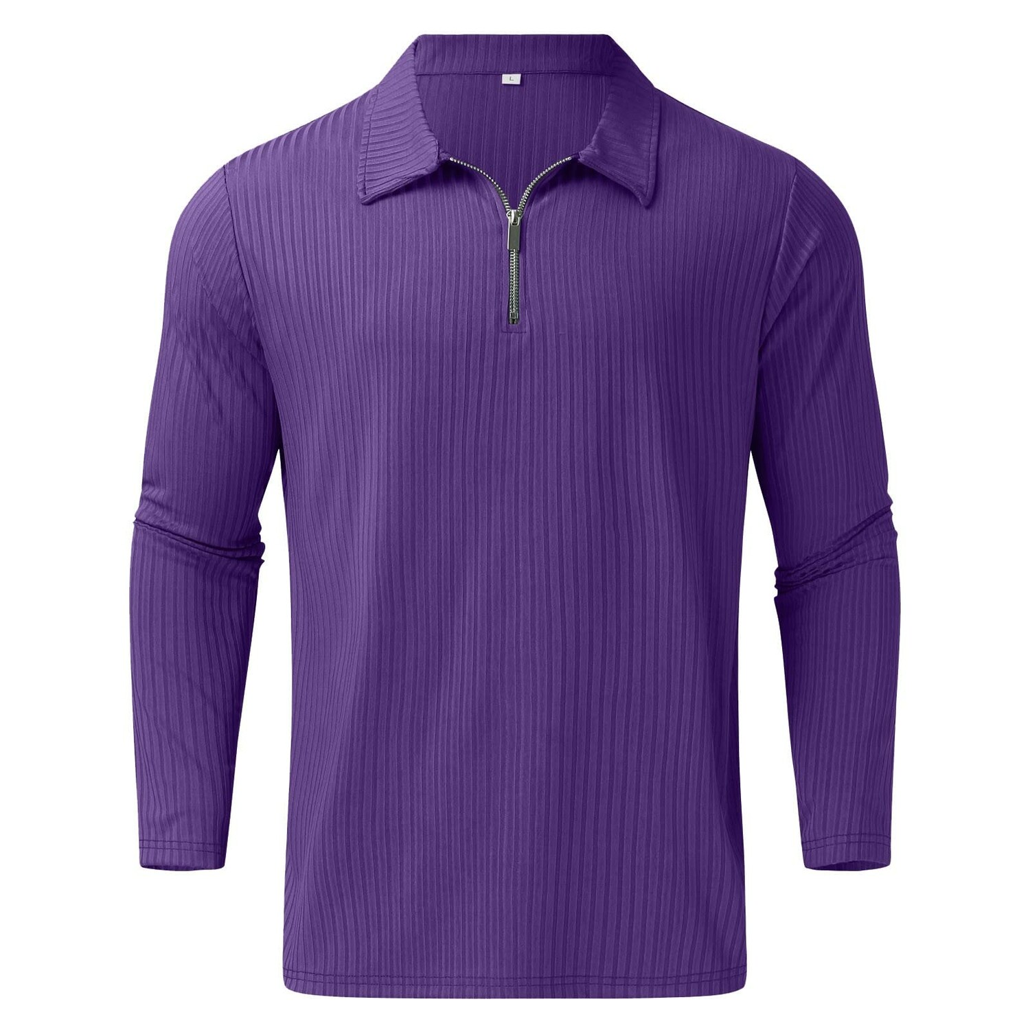 Quarter-Zip Long Sleeve Ribbed Polo Shirt // Purple