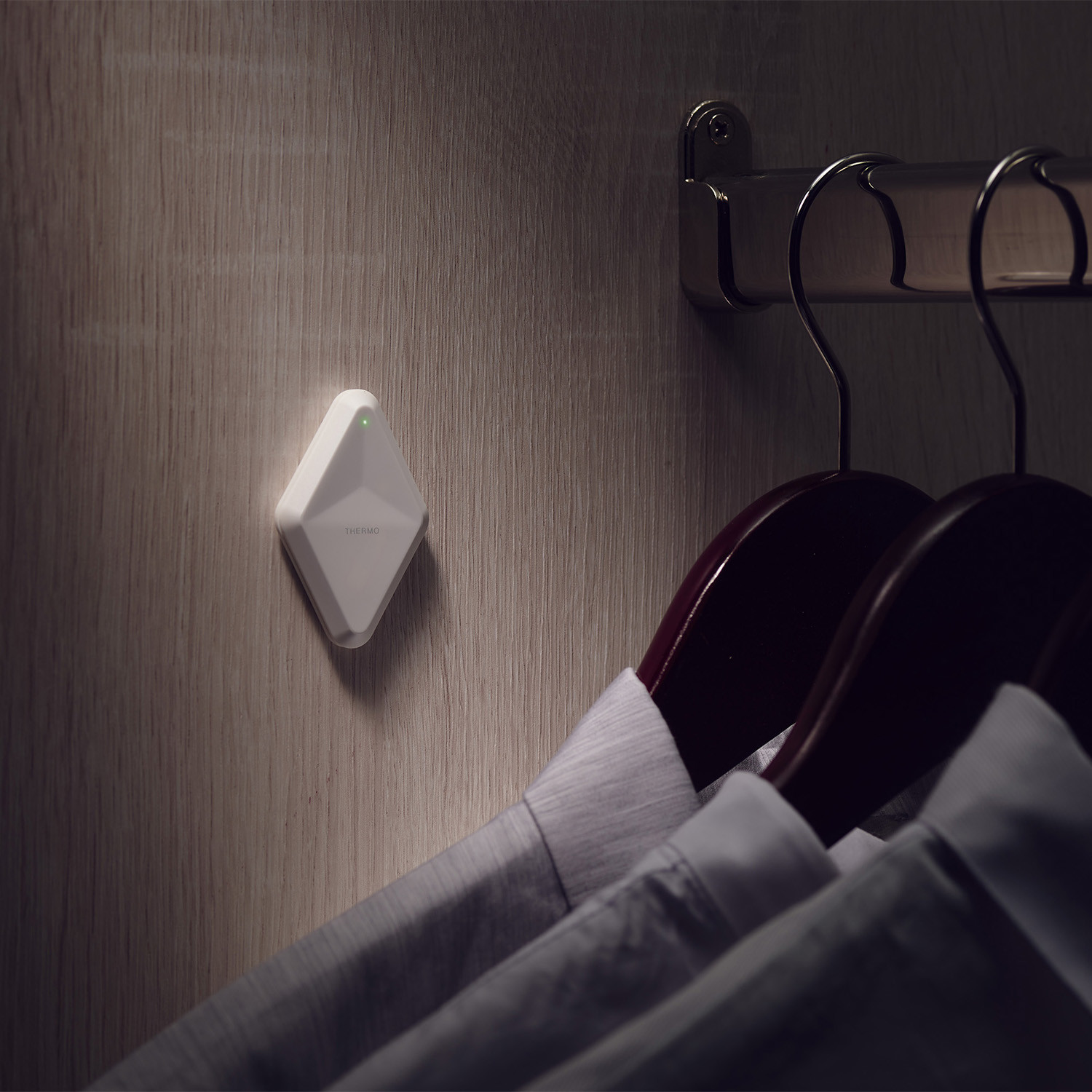 Thermo Pixi is about bringing you peace of mind. It's better to know when there is problem, instead of constantly checking if there is one. Just determine the correct environment for a space, install Thermo Pixi, and you'll get an alert if ever the surrounding temperature or humidity deviates from the optimal range. With a battery life of up to a year, it's one less thing to worry about.