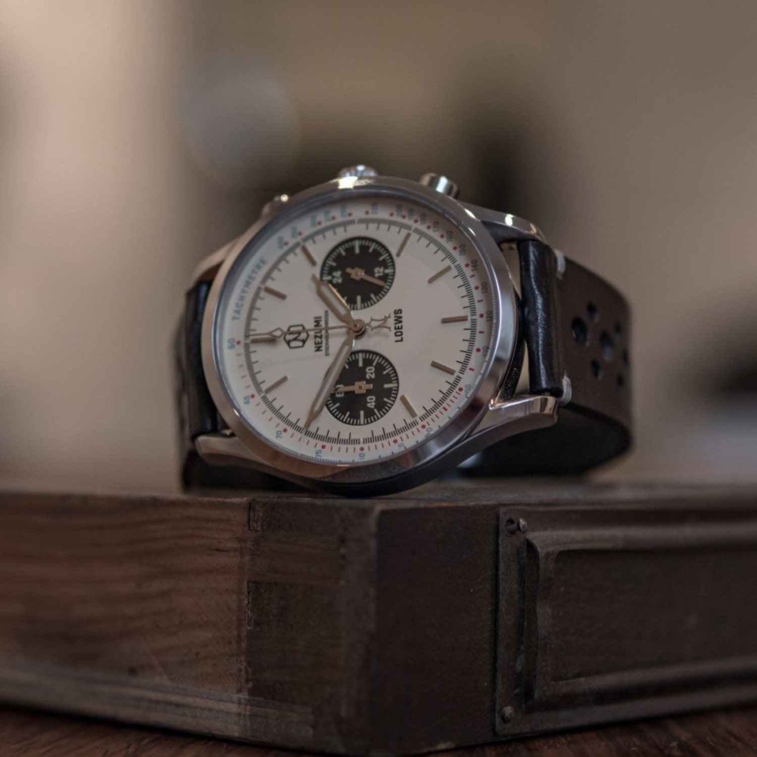 This watch from Nezumi Studios features a bold retro aesthetic inspired by vintage cars and racing. It's a robust, sophisticated timepiece with the flair and mystique of adventurous days gone by.