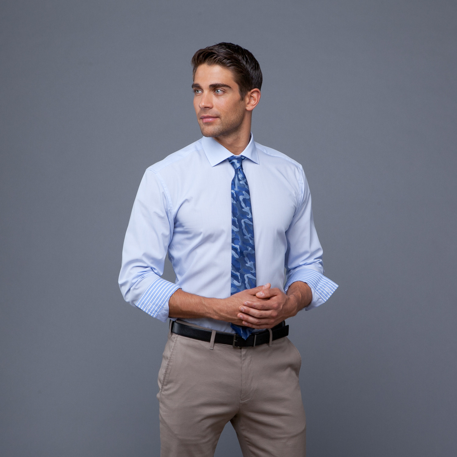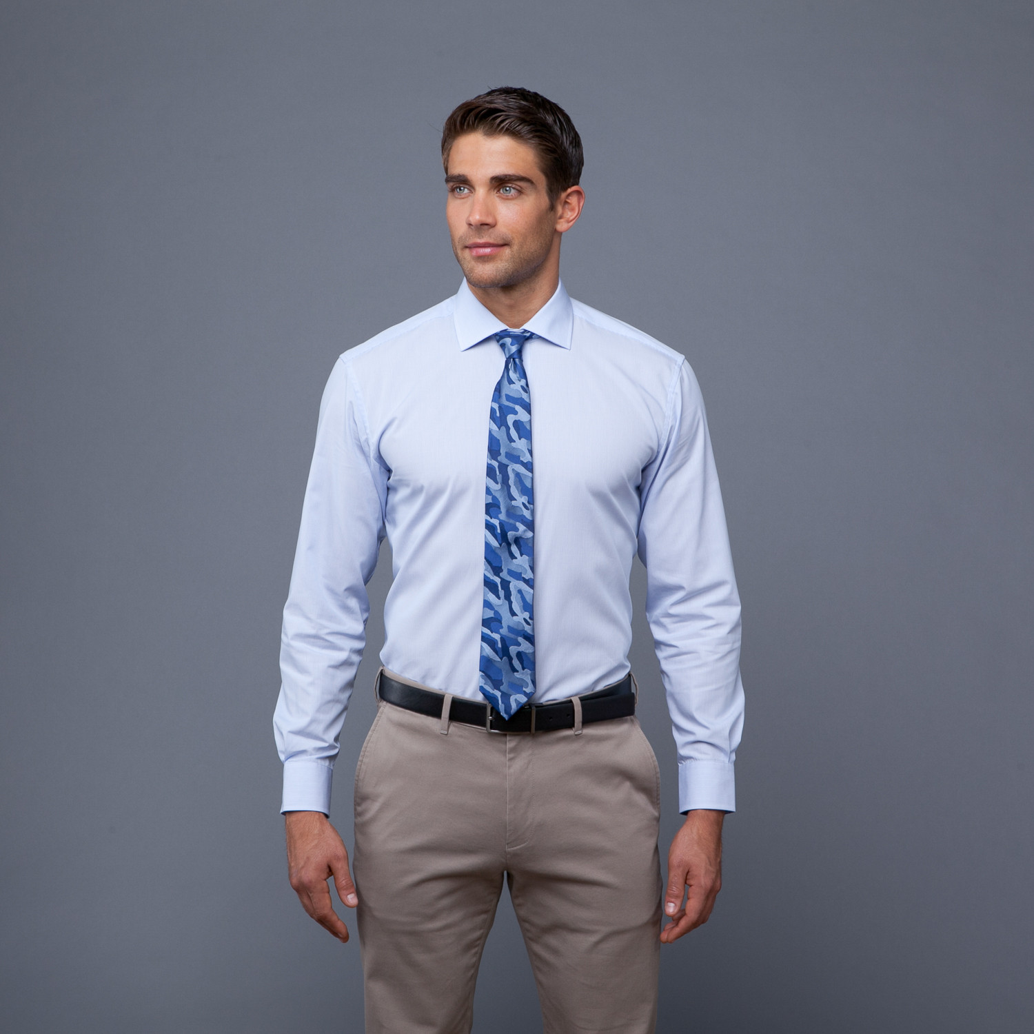 Nick Graham’s office-appropriate line of shirts and ties — each matched for perfect combining — is a perfect way to bulk up your work wardrobe quickly and easily. Wear this flattering Blue Micro Check Shirt and Camo Tie together, or mix and match to get you through the week in style.