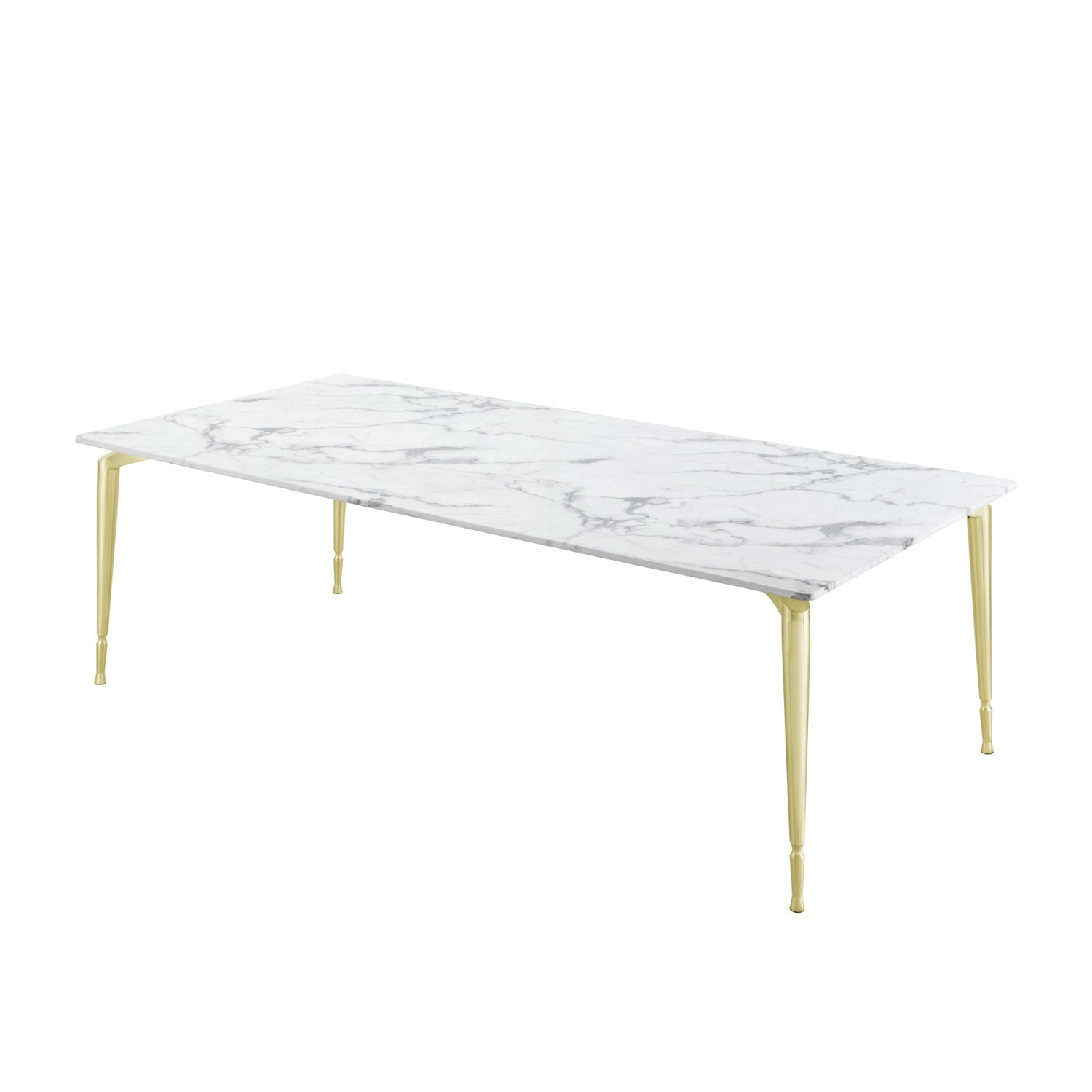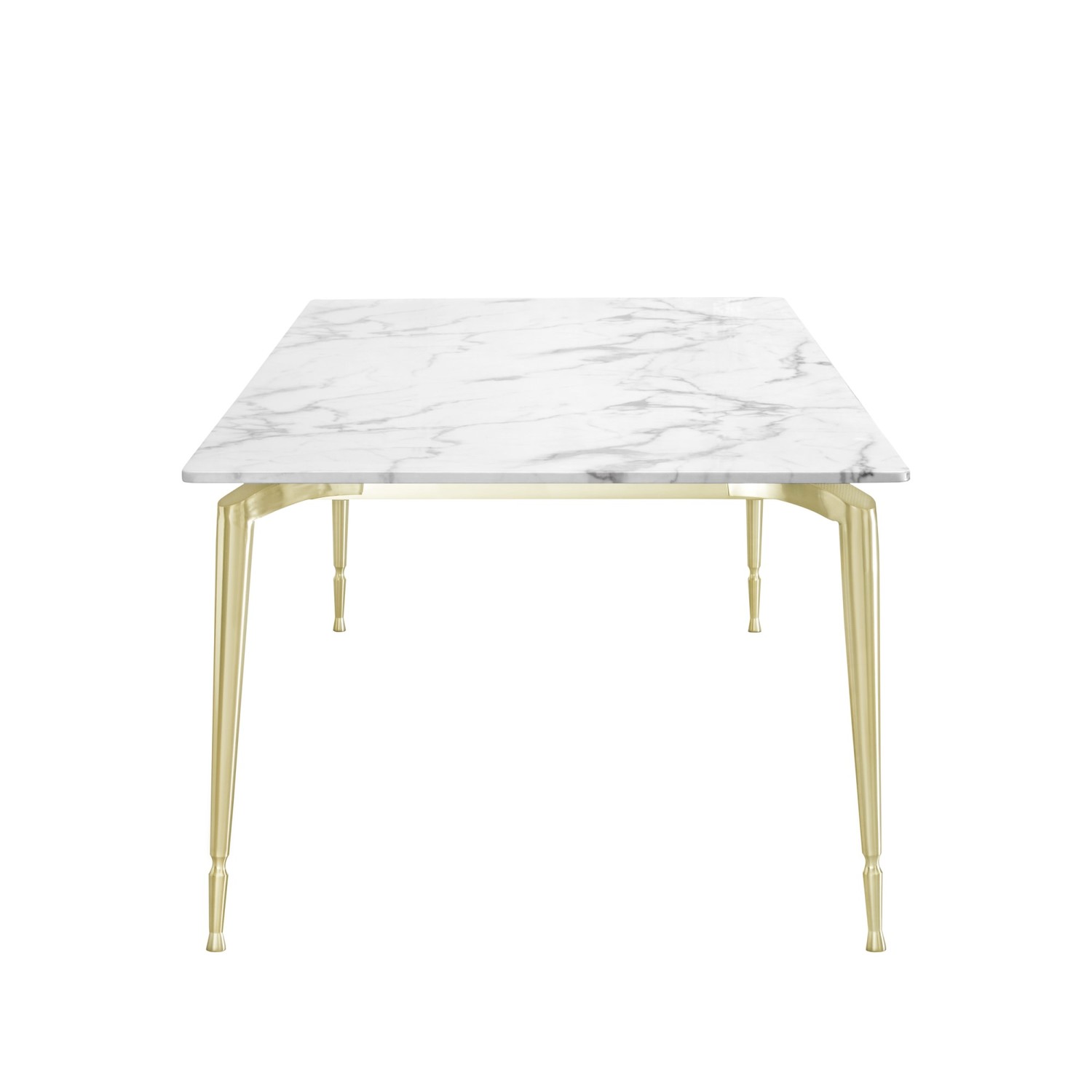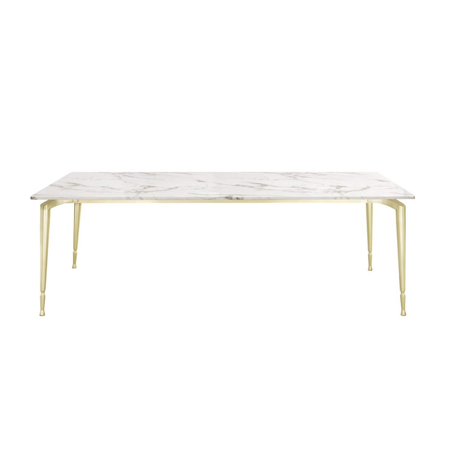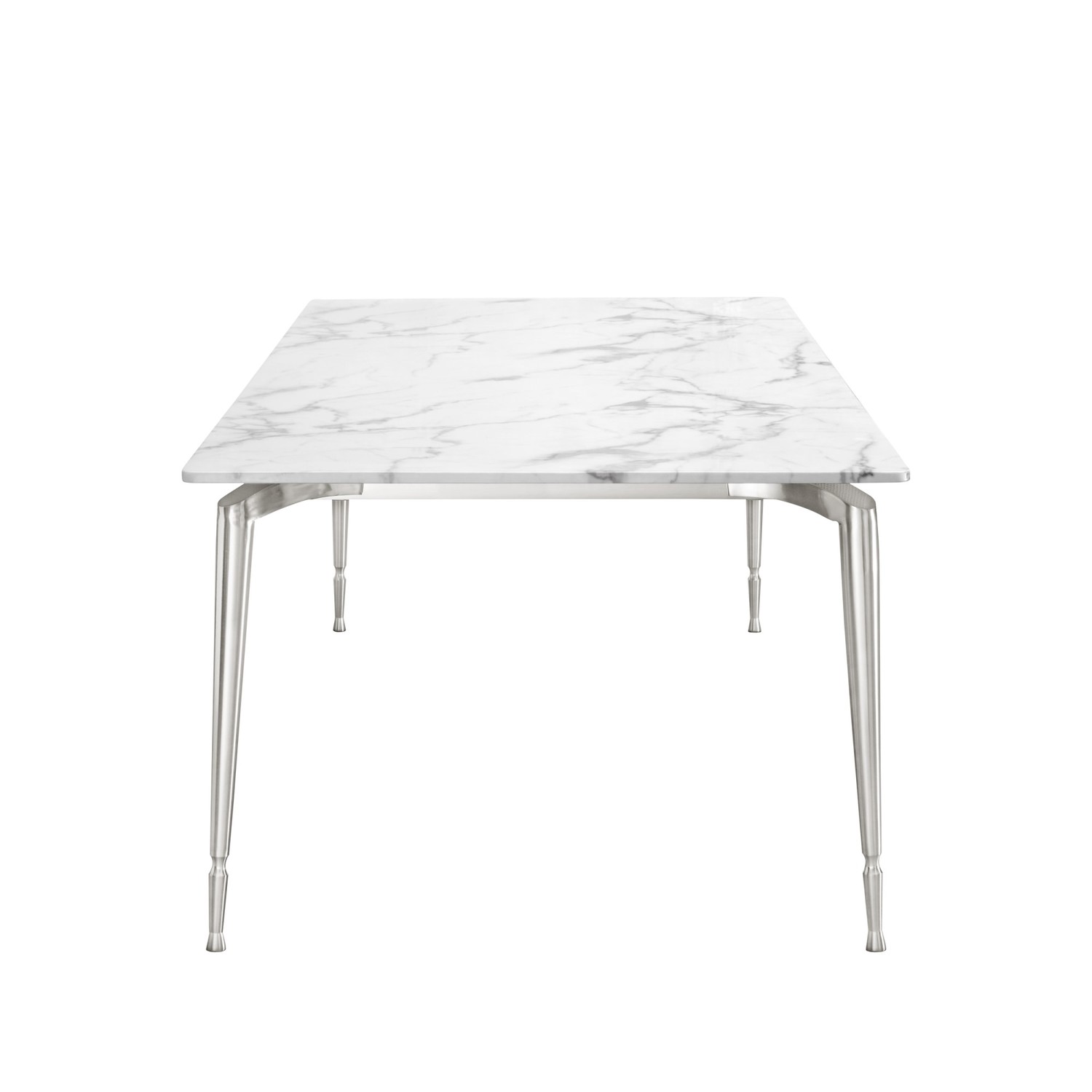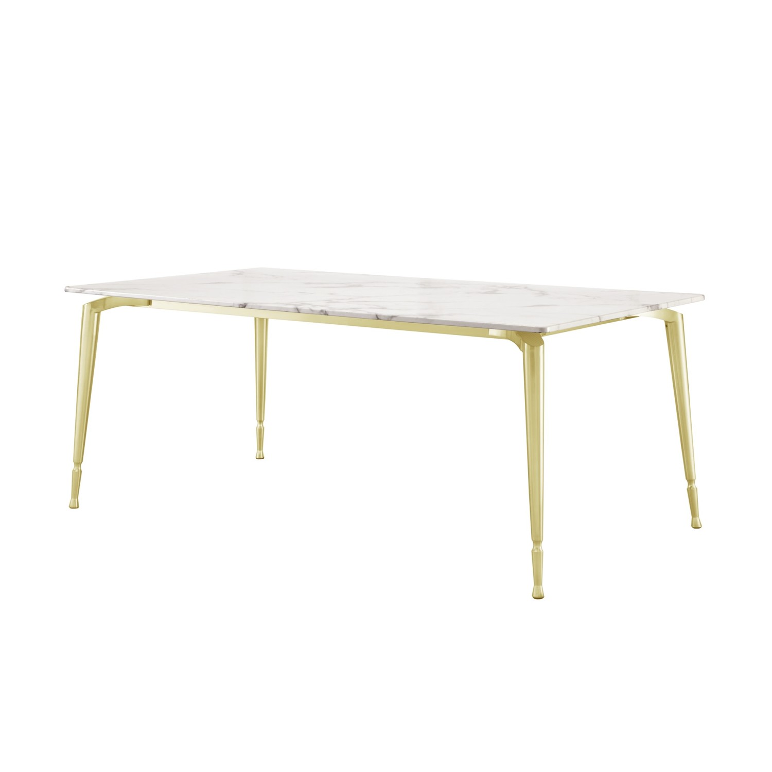 The Bridger dining table creates the ideal atmosphere for everything from weeknight dinners to holiday feasts. The tapered brushed metal finish legs and white marble top offer a sophisticated aesthetic.