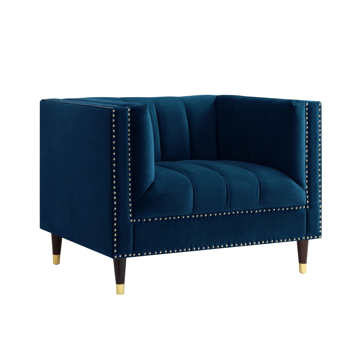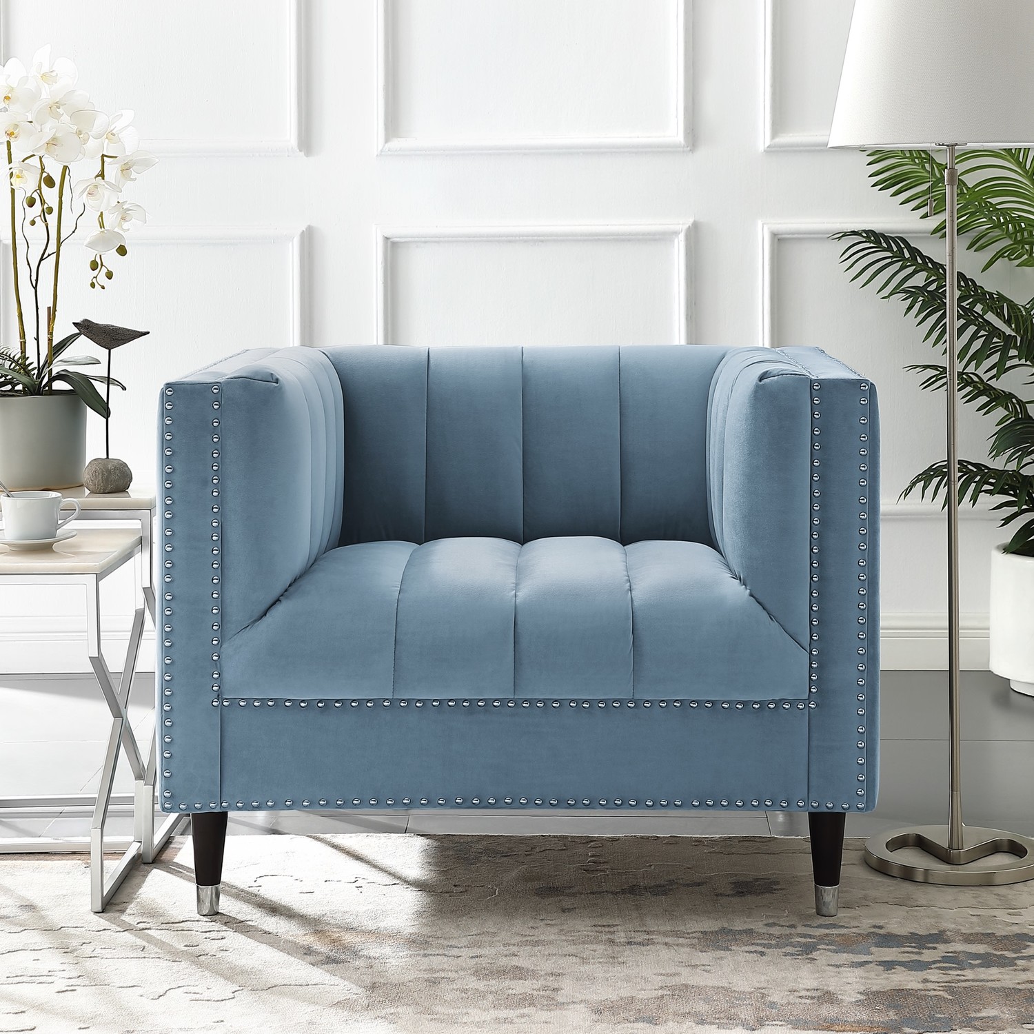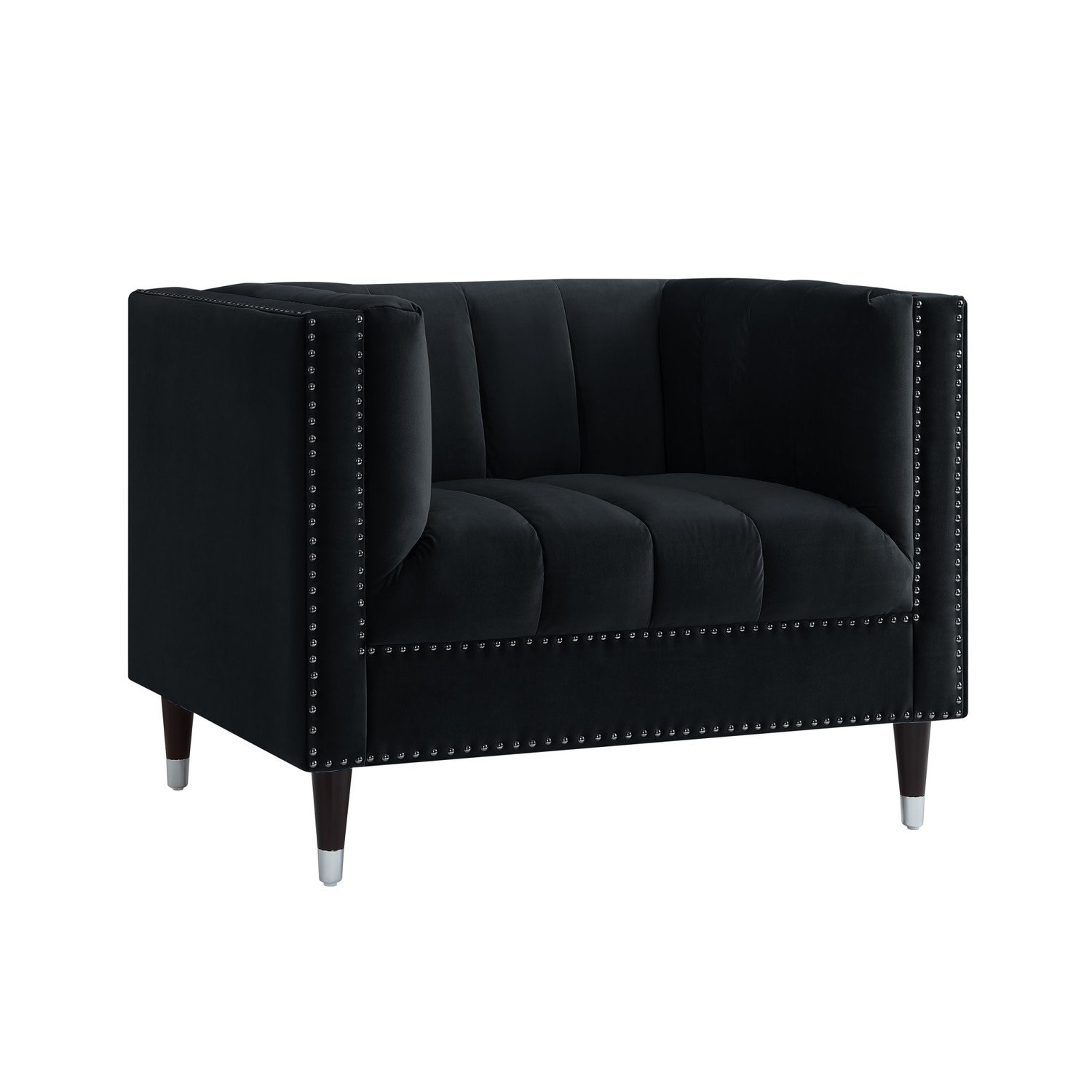 The comfortable and elegant Geoffey velvet club chair allows you to perch upright and take part in a meeting or relax and use a laptop or mobile device. Crafted beautifully with line stitch tufts all along the back, seat, and inner arms, this accent chair brings class and lounging comfort to any room in the home or office.
