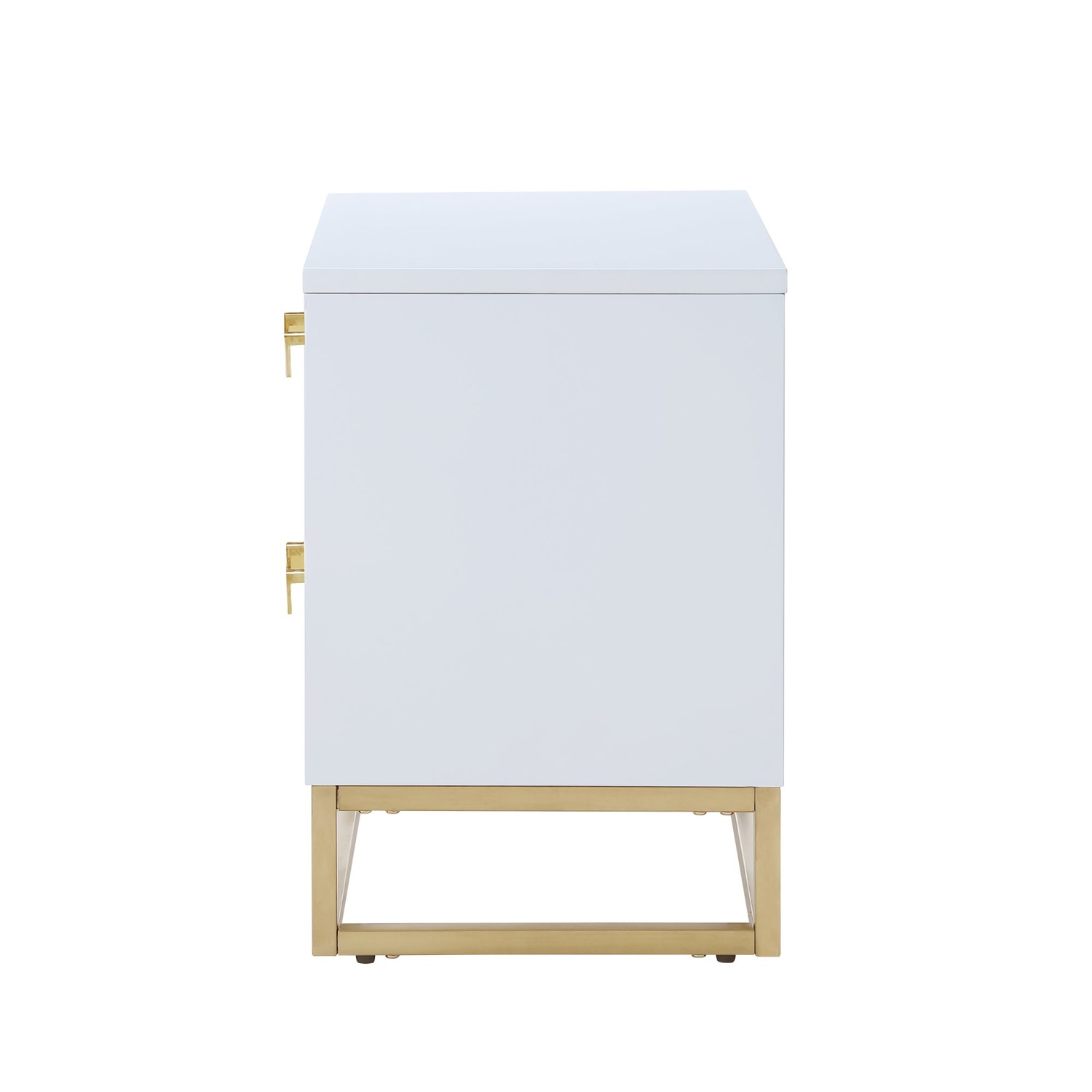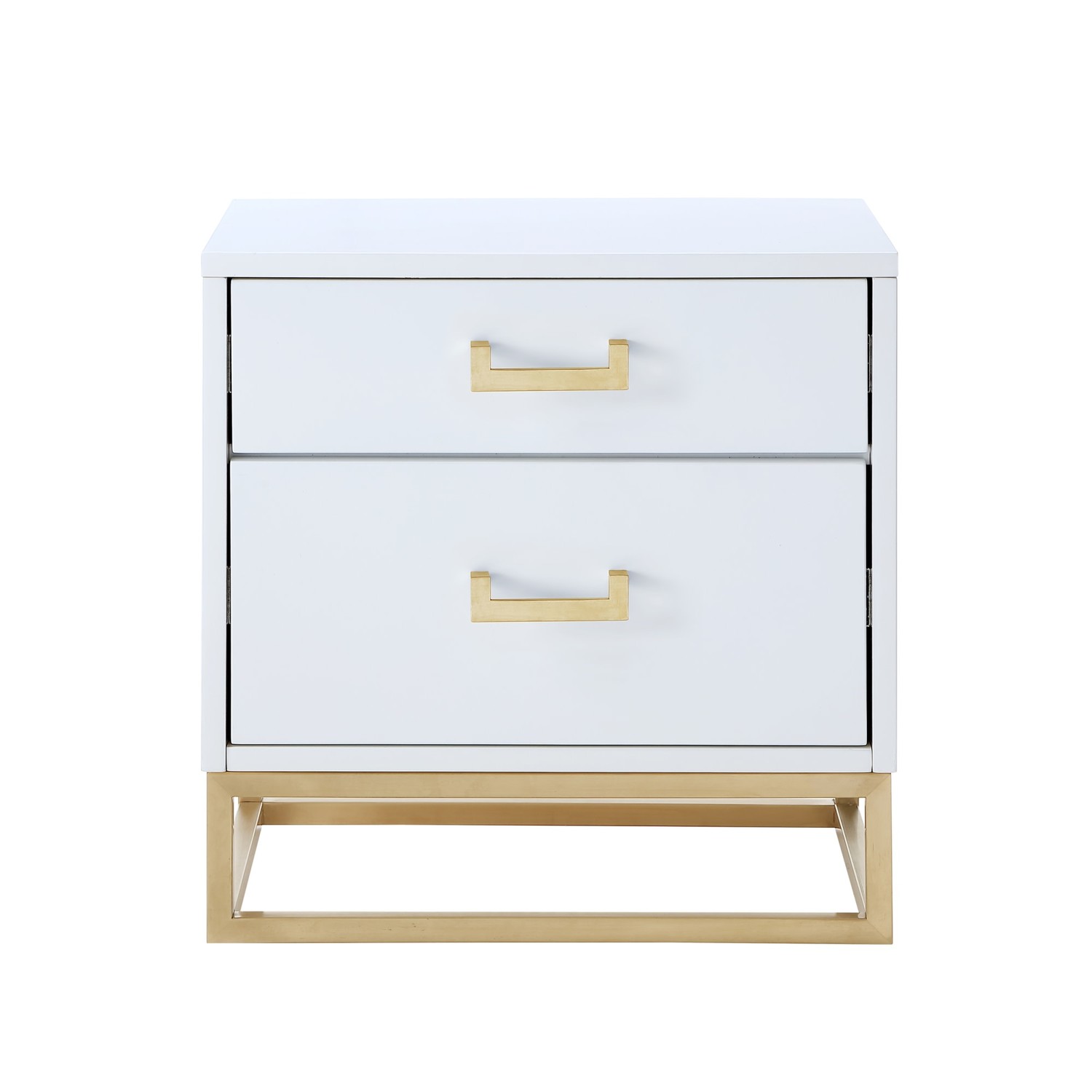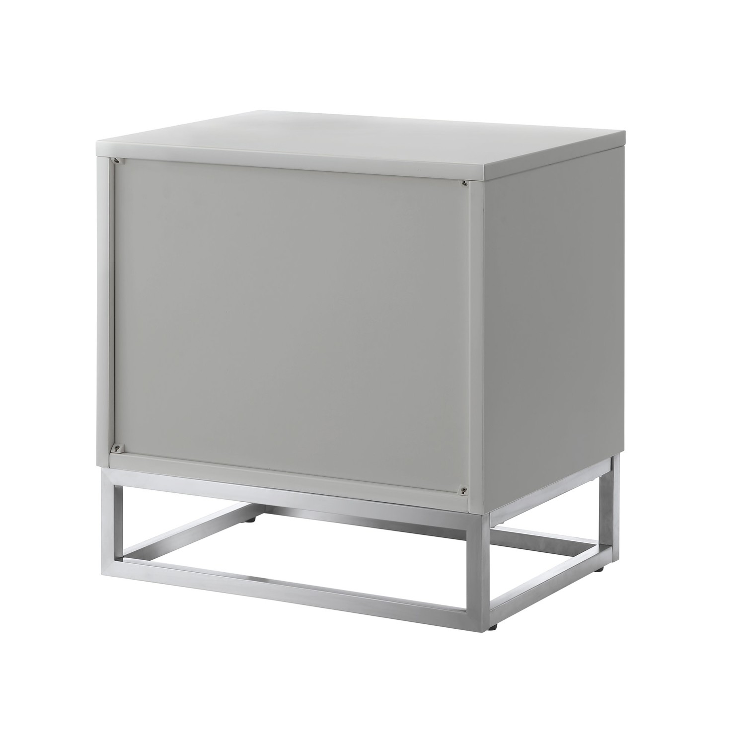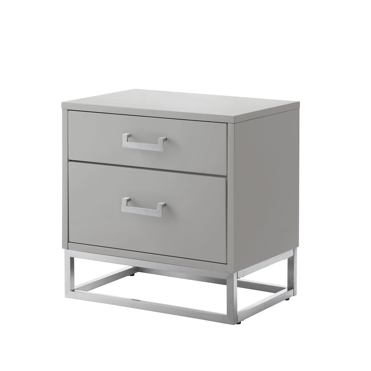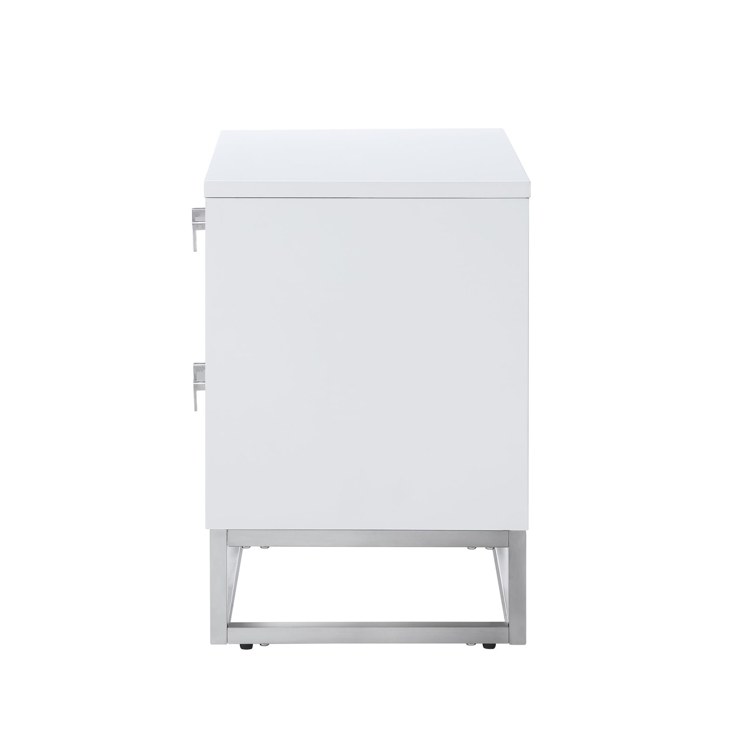 The Perkolli side table adds gentle sophistication to your bedroom, living room, or office. Crafted from MDF in a sleek high gloss finish, this elegant two drawer piece is ideal as an end table in your living room or a nightstand in your bedroom. Shiny handles is a perfect complement to stainless steel base that provides a focal point of color and style.
