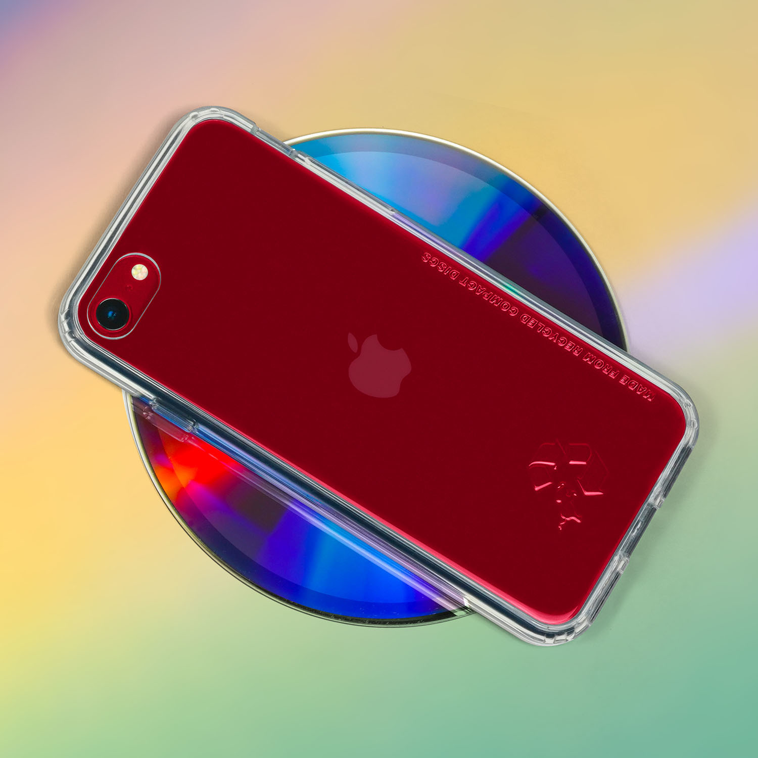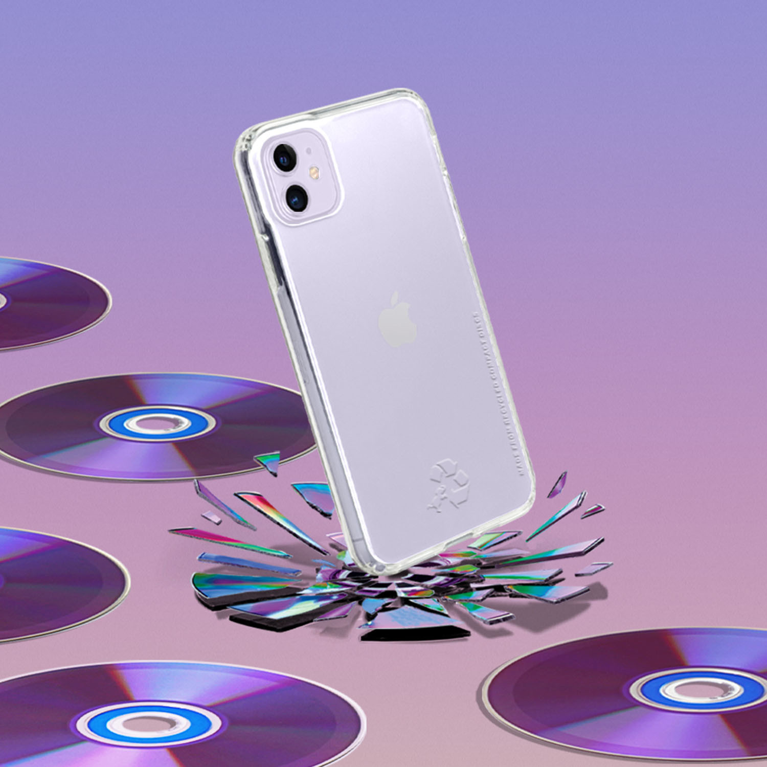 Protect your phone without compromising its stylish, modern look with Disc Case. This slim, clear, and lightweight case for your iPhone is made from 100% recycled compact discs. The durable polycarbonate material isn't just good for the environment, it's tough enough to keep your device protected from bumps and drops up to 6 feet. It's wireless charging-compatible too, so you won't have to remove the case every time you need to recharge. Scratch-resistant and built to last, it features permanent antimicrobial protection to help keep germs at bay.